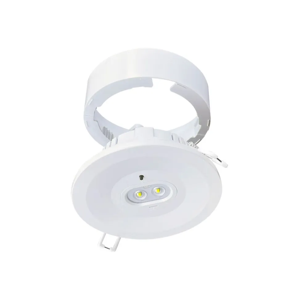 LED-nødlampe Schleswig ALS til indbygning og påbygning LED-nødlampen Schleswig ALS fra Ledino kan bruges både som påbygning og indbygning. Den påbyggede ramme er inkluderet. Armaturet leveres også med en udskiftelig linse, der skaber enten en rund eller oval lyskegle. Et udskifteligt litiumbatteri er integreret for pålidelig nødbelysning. Nødbelysningen har en standby-kontakt, hvilket betyder, at nødbelysningen kun tændes, når strømforsyningen til den generelle belysning svigter – Driftstid: 180 minutter – Slagfasthed IK05