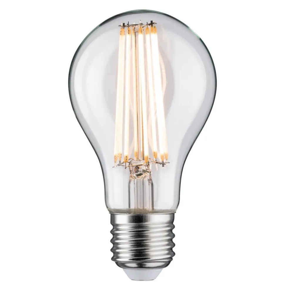 LED-pære E27 11,5W filament, klar, 2.700 K Tekniske data/funktioner: – Højtydende LED-pære til alsidig brug – Sammenlignelig værdi glødepære 95 W – Varmhvid lysfarve (2.700 K) – All-round lysemission – Dæmpbar