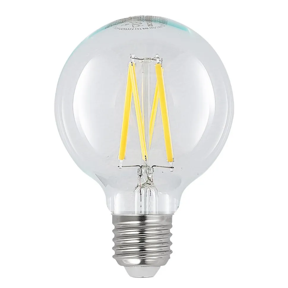 LED-filamentpære E27 8W, med varmhvid lysfarve (2.700 K)