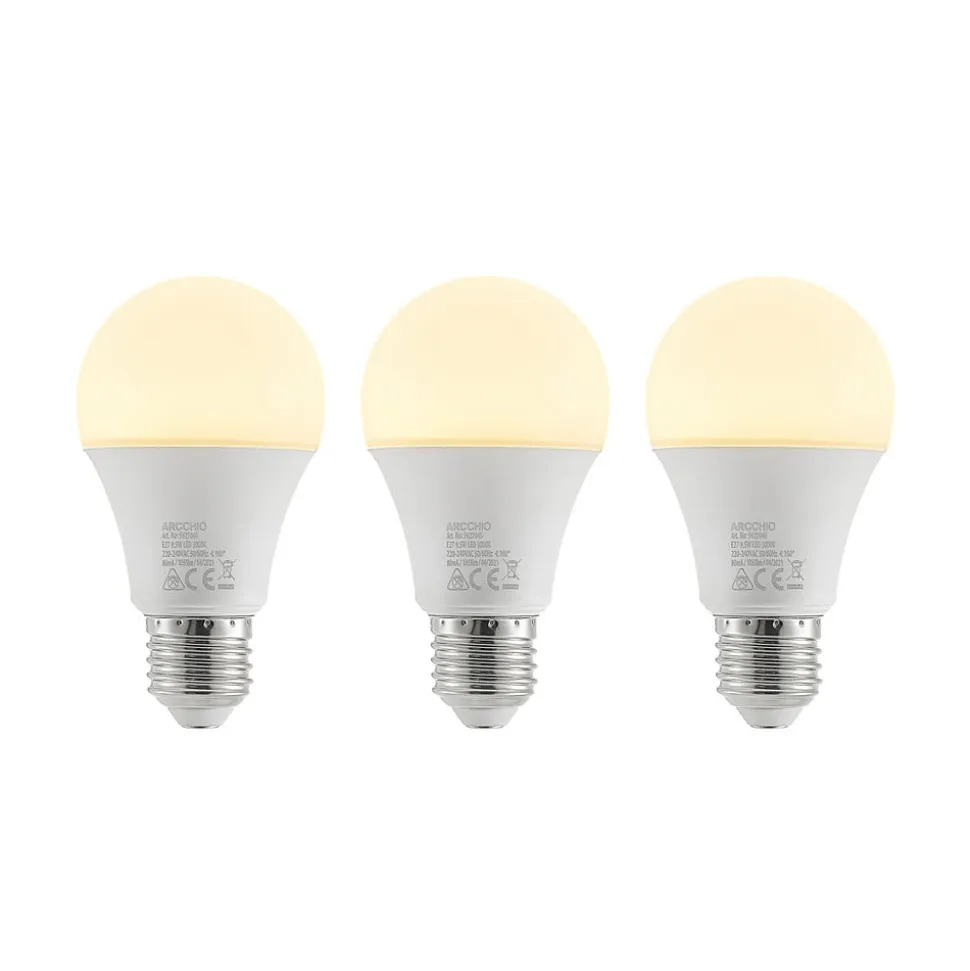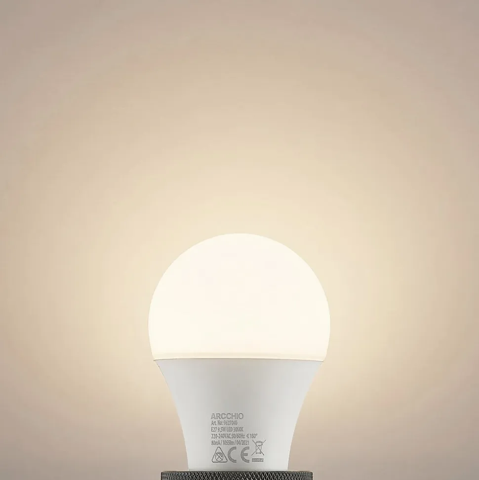 LED-lampe E27 A60 9,5W af plast, opal med varm hvid lysfarve (3.000 K) i et sæt med 3 stk.Lysstyrken på denne LED-lampe svarer til lysstyrken på en konventionel glødelampe med et strømforbrug på 75 W, hvorfor dette lysmiddel er et energibesparende alternativ til brug på mange forskellige områder. – ikke dæmpbar – LED-lampen leveres i et praktisk sæt med 3 stk