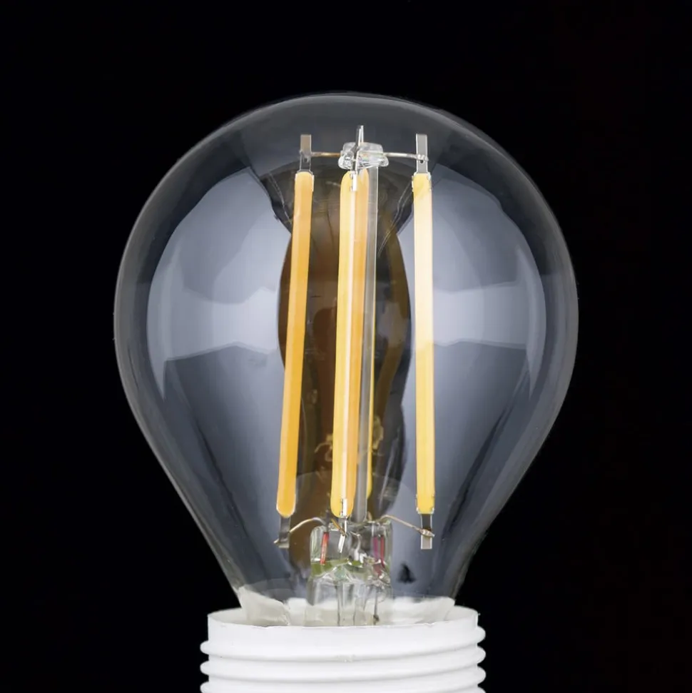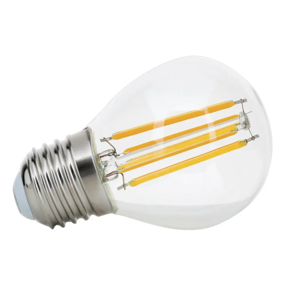 Klar LED-lampe E27 glødetråd 4,5W i miniglobe-form, dæmpbar