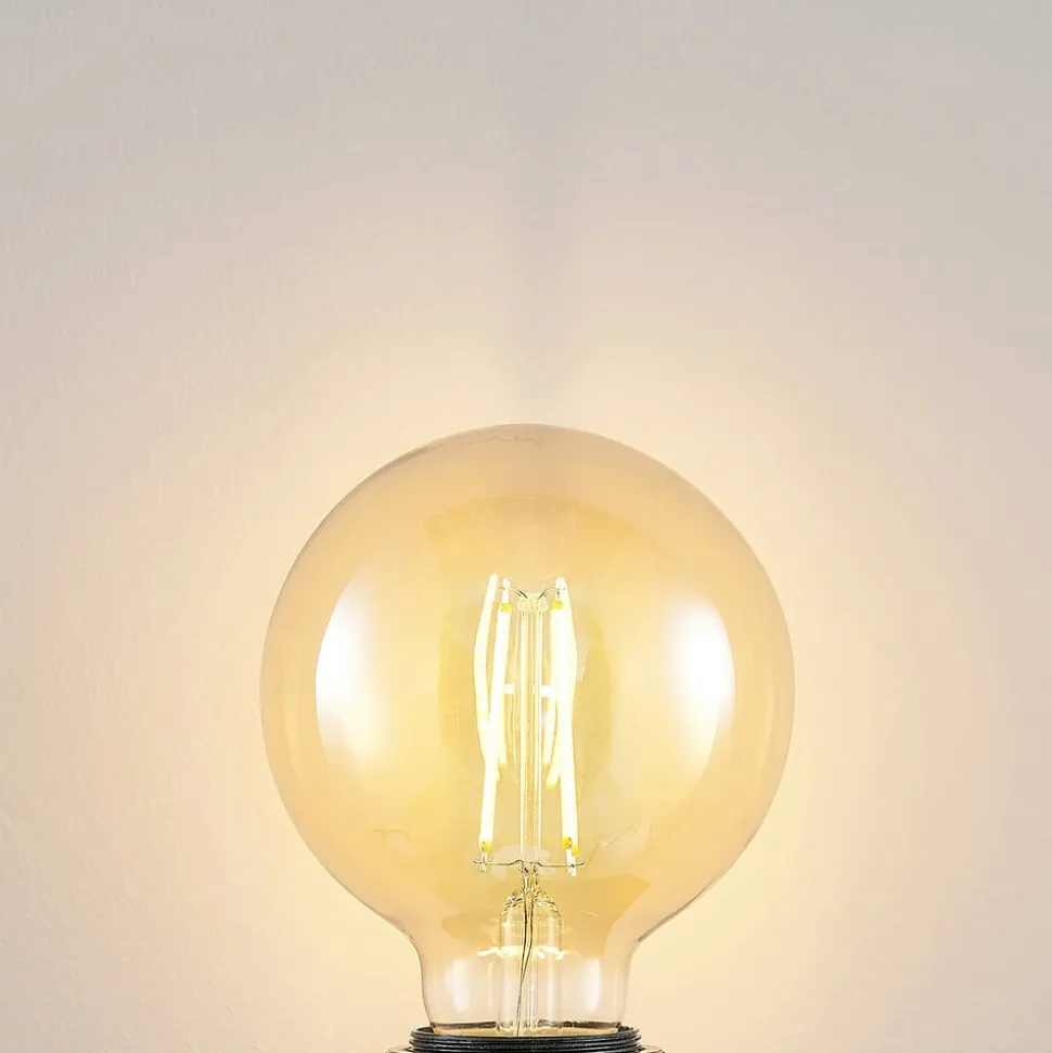 LED-globepære E27 G95 Filament 6,5W, ravfarvet, dæmpbar