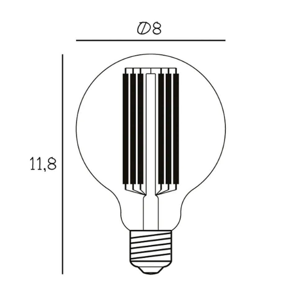 LED-pæren Globe 80 med E27-fatning overbeviser med sin imponerende størrelse, sin særligt varme lysfarve og sine synlige glødetråde. Den er for eksempel velegnet til DESIGN BY US-lamperne Ballroom (undtagen Ballroom XL og Ballroom-gulvlampe), Blindspot og Pollish, men ser naturligvis også godt ud i alle åbne lamper med E27-fatning. Globe 80 er desuden også dæmpbar.