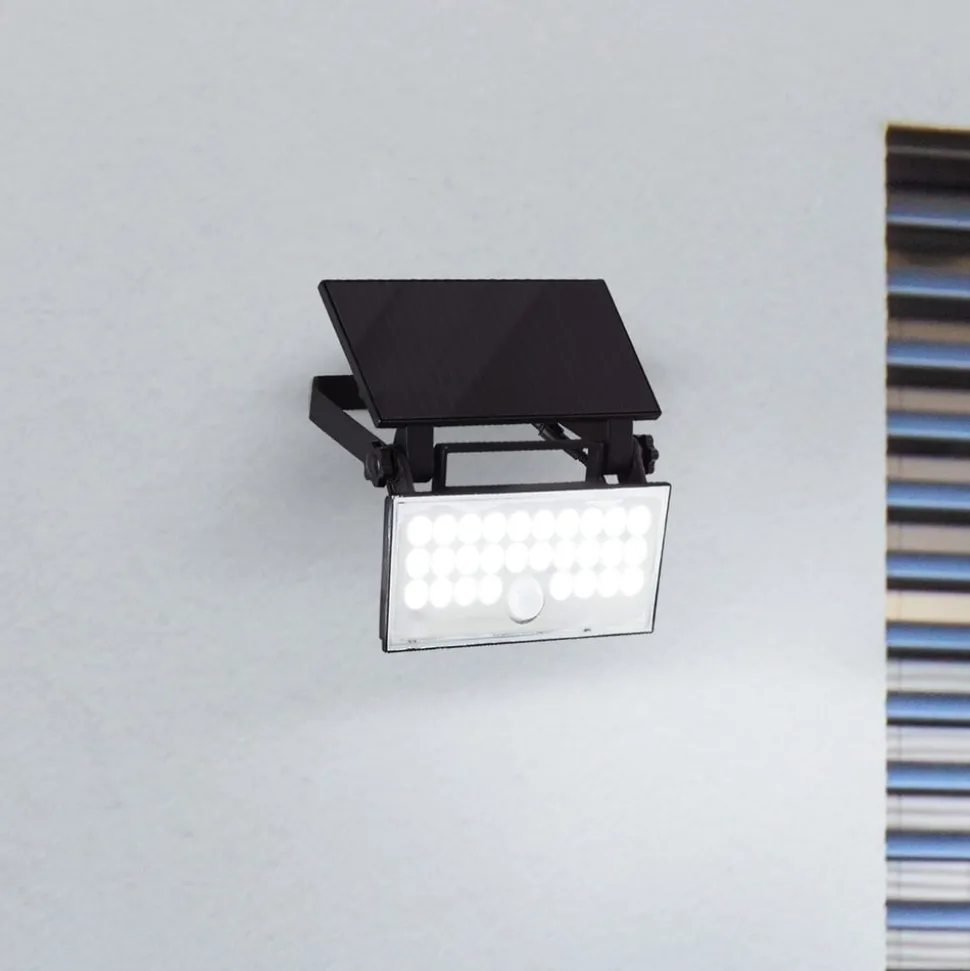 Luton udendørs væglampe i sort med drejeligt lampehoved Den funktionelle, solcelledrevne Luton LED udendørs væglampe er den ideelle løsning til effektiv udendørsbelysning! Designet i sort og udstyret med en praktisk 90-graders drejefunktion imponerer denne spotlight med sine nyttige funktioner til at belyse ethvert udendørs område på en målrettet måde. Den udendørs vægspot udnytter effektivt solenergi, omdanner den til elektricitet og fungerer på en miljøvenlig og effektiv måde, uafhængigt af konventionelle strømkilder. Den integrerede bevægelsessensor giver tre forskellige indstillingsmuligheder for optimal belysning. Spotlighten kan drejes 90 grader, så lyset kan rettes præcis derhen, hvor der er brug for det. Solcellepanelet kan også drejes 90 grader, så det er optimalt i forhold til solen. IP65-spotlighten er støvtæt og beskyttet mod stærke vandstråler – pålidelig belysning, selv under ugunstige vejrforhold.
