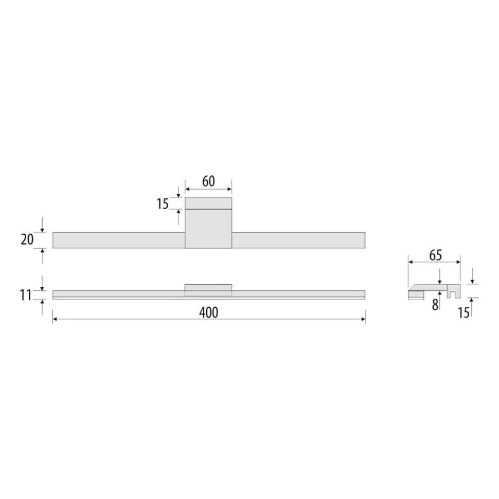 Moderne LED-spejlarmatur Triga i krom til badeværelsetSpejlarmaturet Triga overbeviser med homogent, blændfrit lys og moderne design. Armaturhuset er fremstillet af aluminium i en slank, rektangulær form og har en moderne kromfinish. Lyset fra de integrerede LED’er udstråler nedad gennem en satineret afdækning. Triga er udstyret med en fastgørelse til direkte montering på spejlets overkant.- Beskyttelsesklasse: IP44- LED-driver medfølger- reduceret blænding (UGR < 19)