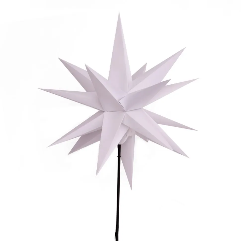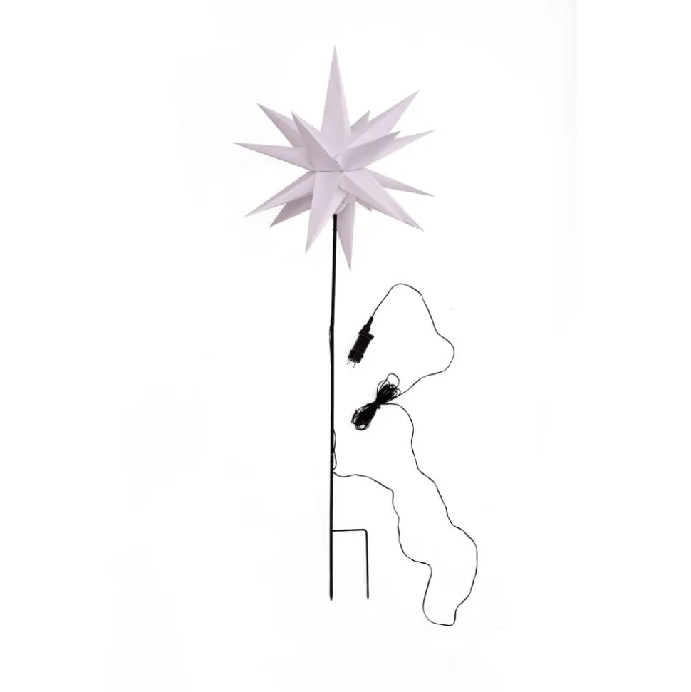 LED-stjerne, ude, med jordspyd, Ø 55 cm, hvid