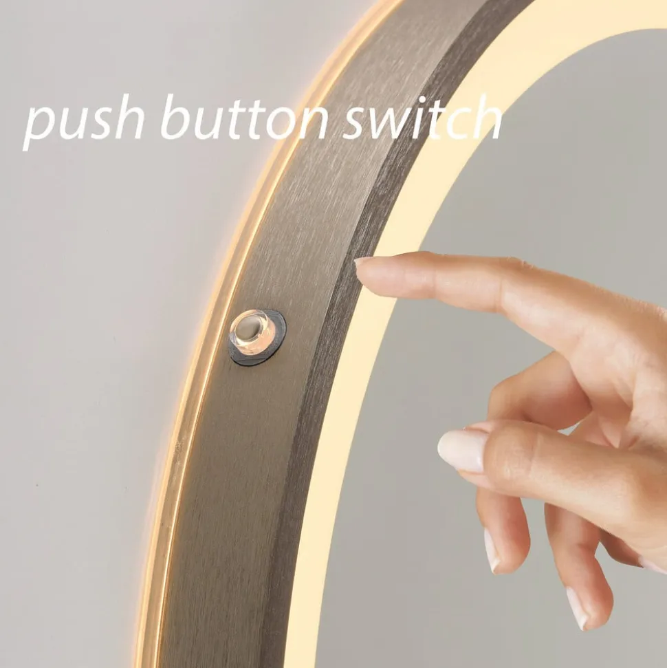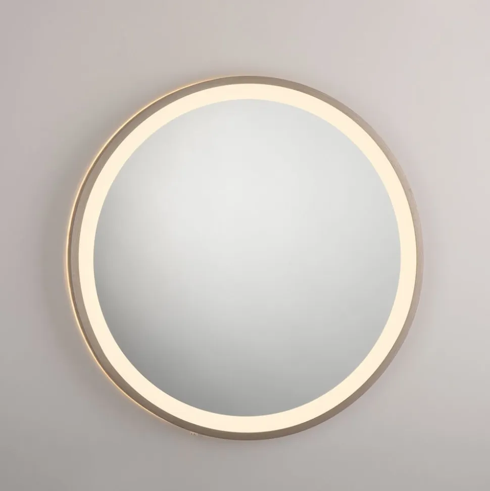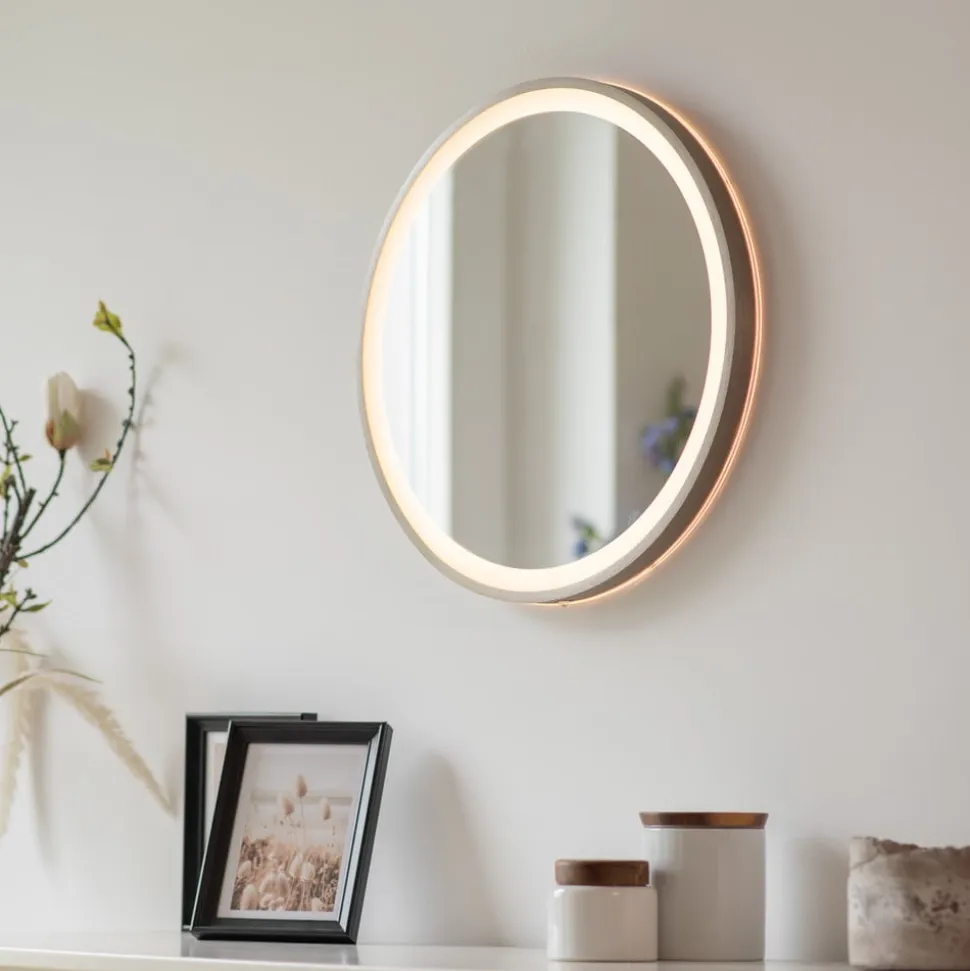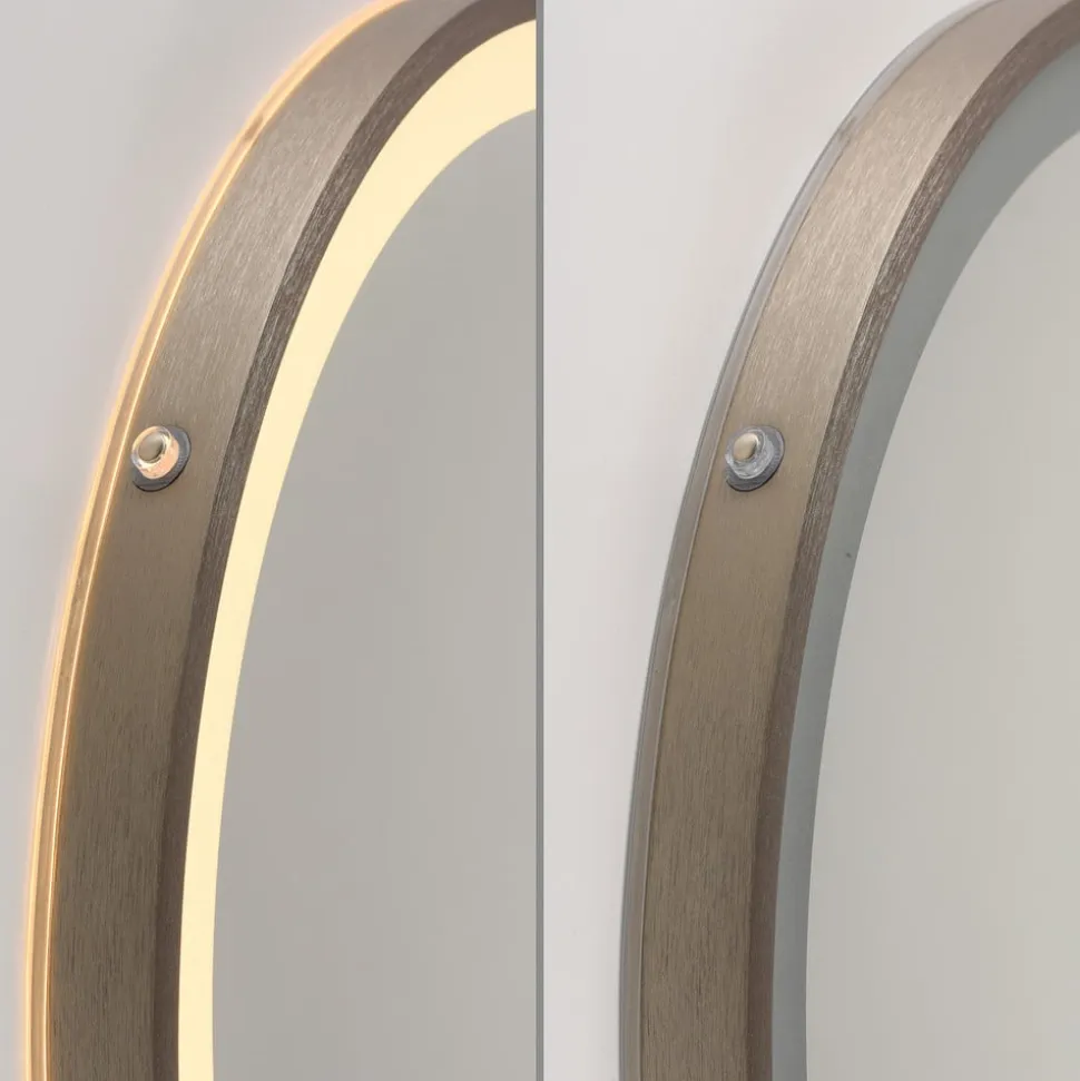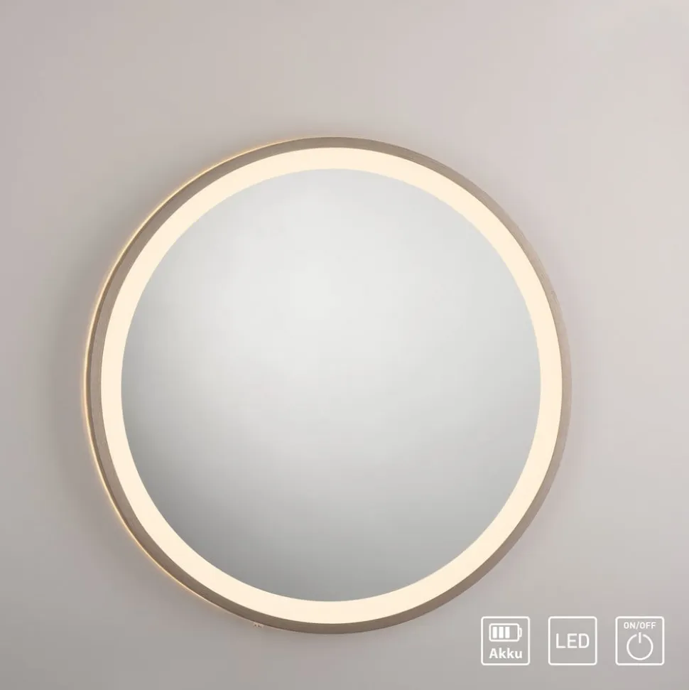 LED-vægspegel VIDRO, bronze, Ø 46 cm, powerbank, afbryder
