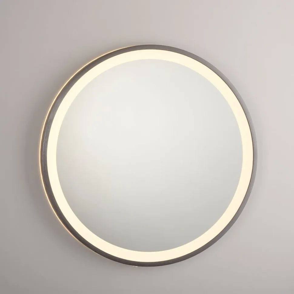 Rundt vægspegel VIDRO med varmhvid LED-belysning og flot baggrundsbelysning