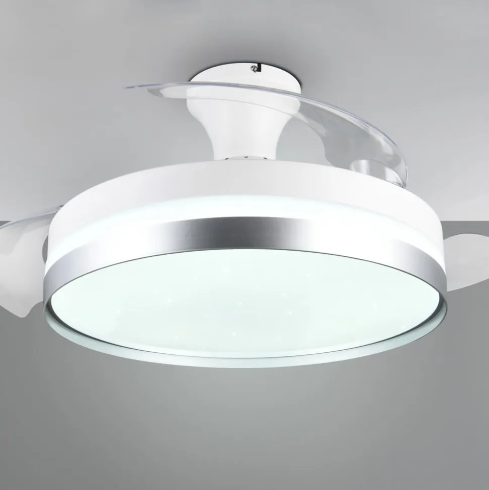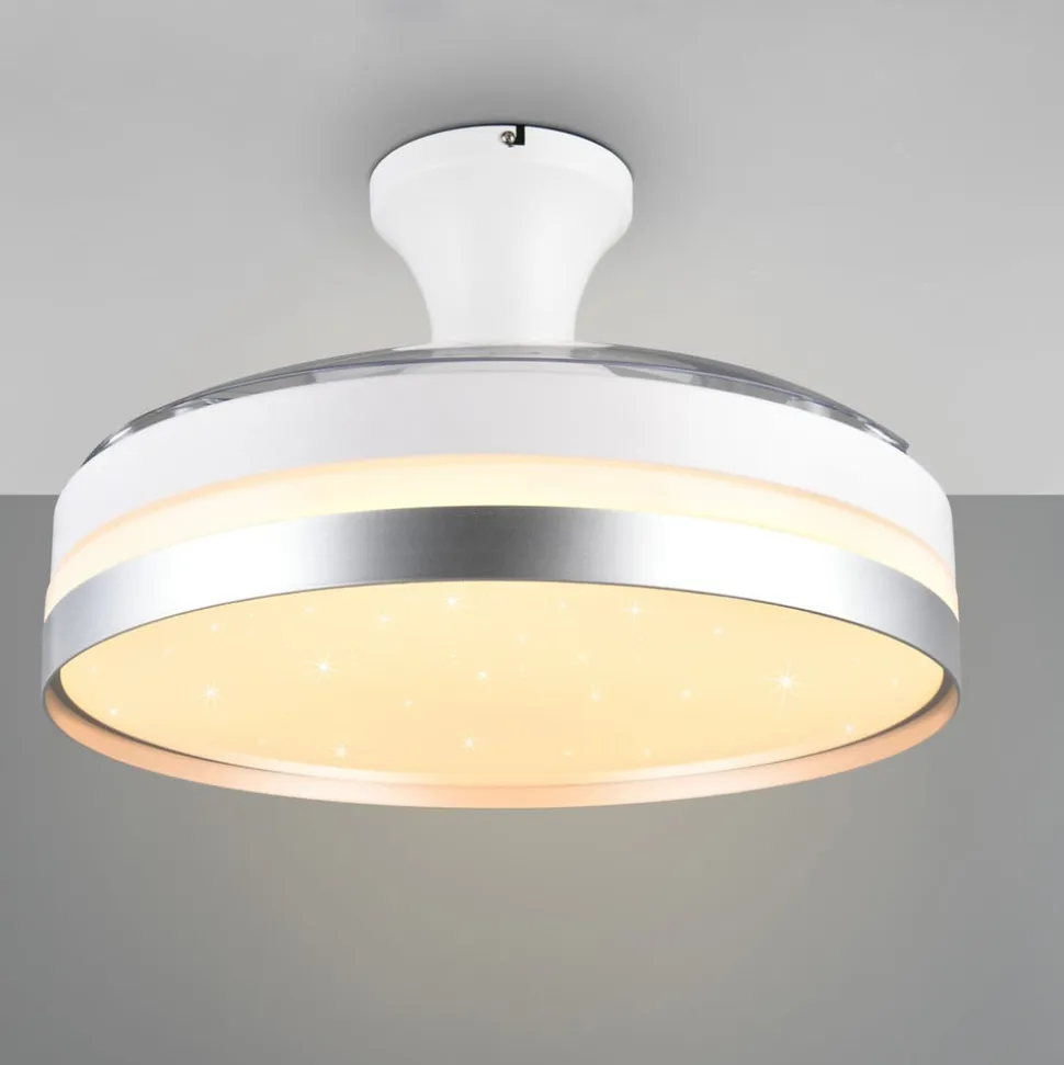 Loftslampe Lindberg tilbyder med sin ventilatorfunktion en 2-i-1-løsning. Med den medfølgende fjernbetjening kan du nemt og bekvemt justere lysintensiteten og lysfarven trinløst efter dine behov. Hvis du imidlertid har brug for mere end bare lys, kan Lindbergs ventilatorvinger foldes ud med et tryk på en knap.