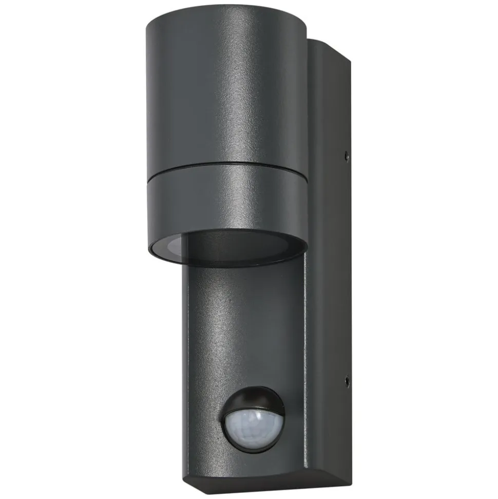 Endura Classic Isidor udendørs væglampe med GU10-fatning og sensor Isidor er en nedadrettet udendørs væglampe fra Endura Classic-serien fra LEDVANCE med et mørkegråt hus i trykstøbt aluminium, IP65-beskyttelsesgrad, matteret afskærmning og G10-fatning. Armaturet er udstyret med en PIR-bevægelsesdetektor og dagslyssensor og kan udstyres med en lyskilde efter eget valg, og lyset sendes nedad. Sensordata: – Rækkevidde 8 m – Registreringsområde 100° – Monteringshøjde 2 – 3 m – Dagslyssensorens responslysstyrke 20 lux – Lysets varighed kan justeres fra 10 sekunder til 5 minutter