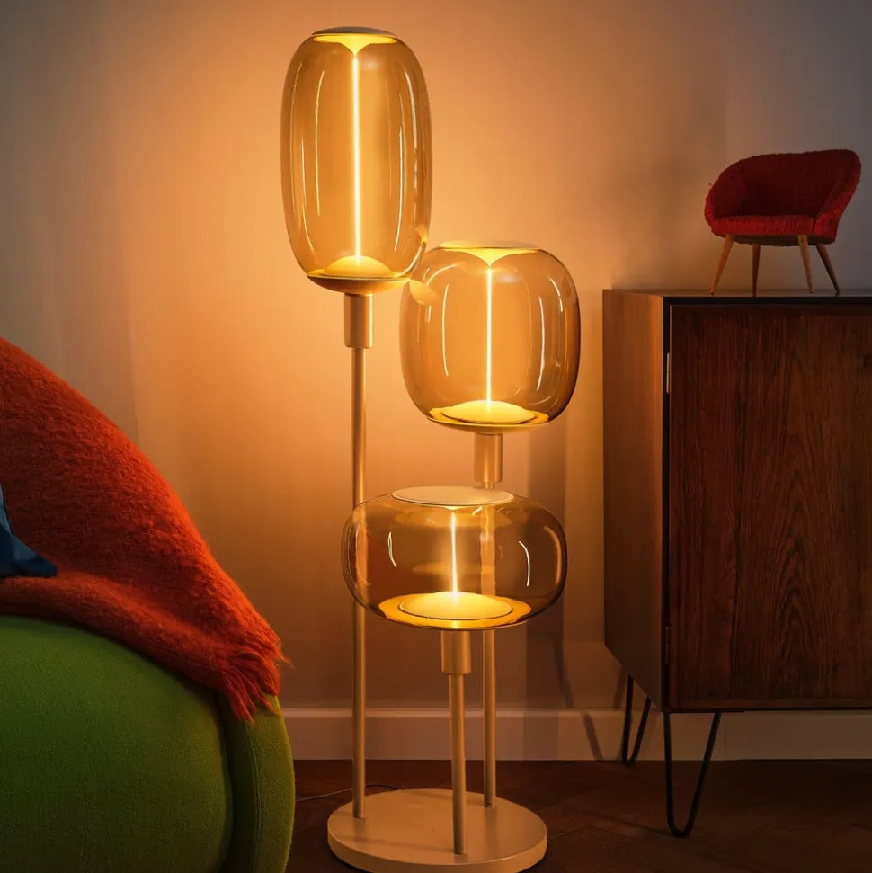 Decor Stick gulvlampe med tre E27-fatninger, højde 78 cm På gulvet eller på en skammel eller et lavt møbel giver den minimalistisk designede Decor Stick gulvlampe en scene til dekorative lyskilder. De tre E27-fatninger kan monteres individuelt med en lang række forskellige lyskilder, så hele gulvlampens udseende kan ændres. Samme eller forskellige former, forskellige lysfarver, farver og lysintensiteter – der er stort set ingen grænser for mulighederne. Gulvlampen kan bruges til at skabe unikke belysningsscenarier i stuen. Stellet ser ud til at være af høj kvalitet og er lavet af stål med en mørkegrå finish. Den tændes og slukkes nemt ved hjælp af den fodkontakt, der er integreret i forsyningskablet.