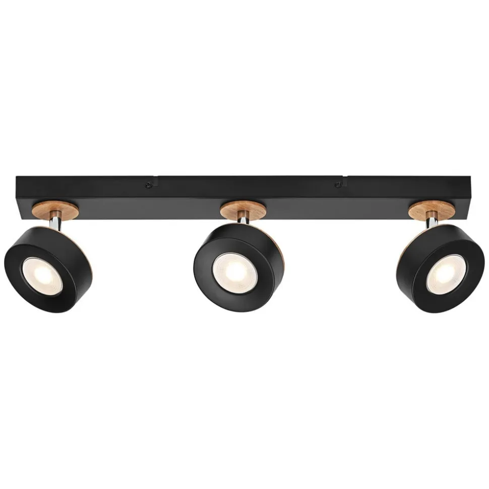 LEDVANCE LED-loftspot Pluto, stål, træ, 3-lys, sort