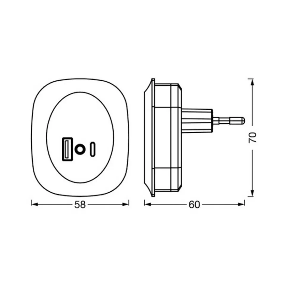 - automatisk omkobling takket være dagslyssensor; udstyret med opladningsstik (USB-A og USB-C)