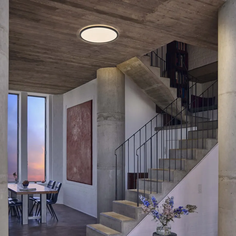 Orbis Ultra LED-loftarmatur med baggrundsbelysning og click-dim-funktionDet runde Orbis Ultra LED-loftarmatur er ultrafladt og har ud over direkte lys også en baggrundsbelysning, der oplyser loftet omkring armaturet. Det er nemt og hurtigt at installere og kan bruges på mange forskellige måder.Et særligt kendetegn ved armaturet er click-dim-funktionen. Den gør det muligt at dæmpe armaturet i tre trin via lyskontakten ved gentagne omskiftninger.