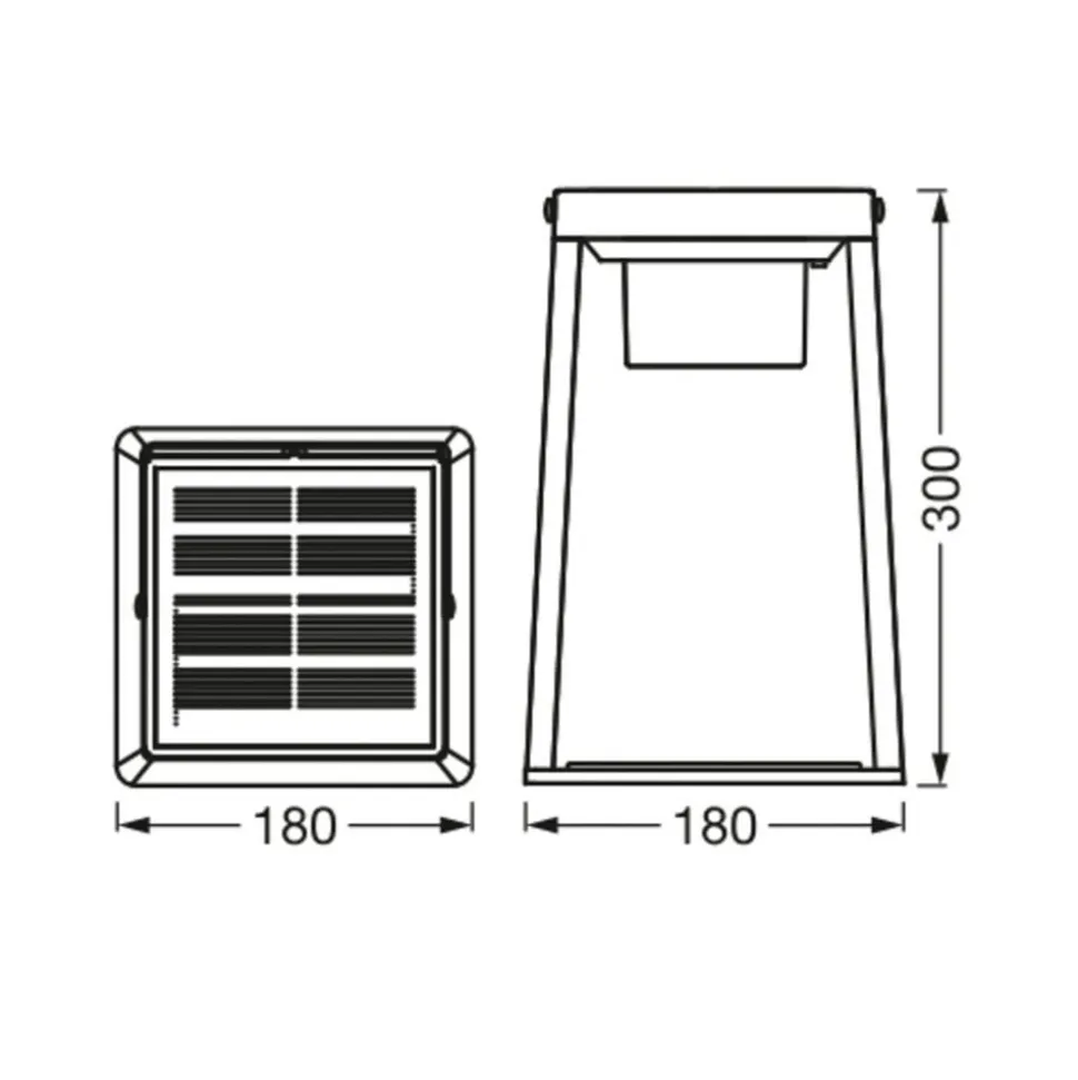 LED dekorativ lanterne Table Frame Solar Multicolor med genopladeligt batteri, solcellepanel og SMART Bluetooth-teknologiI haven, på terrasser og altaner og også på campingpladsen er den lanterneformede LED-solcelle lanterne Table Frame Solar Multicolor, som også kan hænges op, en velkommen lyskilde. Den kan lyse i både farvet og varm hvid belysning og kan styres via Bluetooth ved hjælp af en app på en tablet eller smartphone. Desuden er der indbygget et solpanel i toppen af lygten, så det integrerede batteri kan oplades i sollys. Alternativt kan batteriet også oplades via det medfølgende opladningskabel (opladningstid ca. 5 timer).- Ca. 16 millioner farvemuligheder eller varmt hvidt lys (3.000 K) kan indstilles- Dæmpbar- Styring via LEDVANCE SMART Bluetooth-appen, gratis til Android eller iOS- Stemmestyring via Amazon Alexa eller Google Assistant mulig- Integreret powerbankfunktion, f.eks. til smartphones