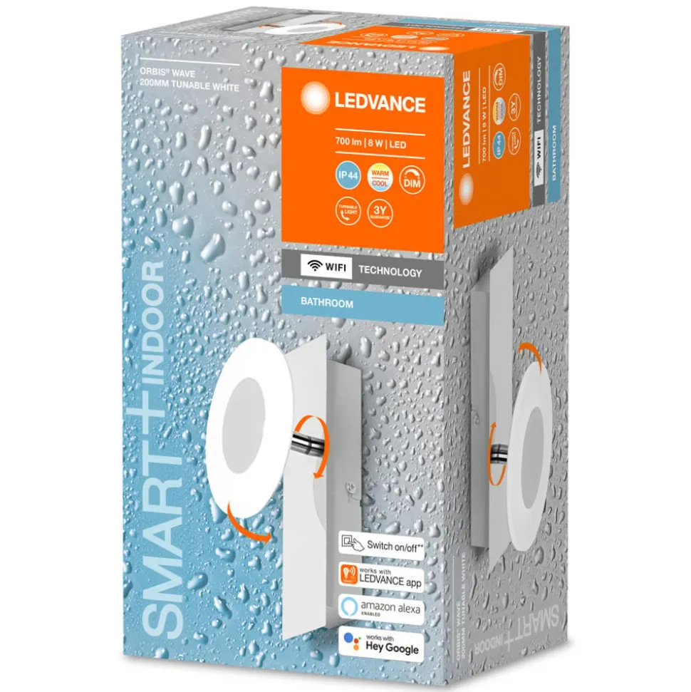 Orbis Wall Wave LED-vægarmaturet er fremstillet i stål og fås i farverne sølv og hvid, hvilket gør det nemt at passe ind i forskellige boligmiljøer. Takket være beskyttelsesklasse IP44 er armaturet ideelt til brug i badeværelset. Der kan den f.eks. installeres som en lyskilde ved siden af spejlet. Den lille skærm og armaturets samling kan justeres individuelt. Farvetemperatur og lysstyrke kan også justeres efter individuelle behov via app eller stemmestyring. Integrationen sker med LEDVANCE SMART+ WiFi-teknologien via WLAN.
