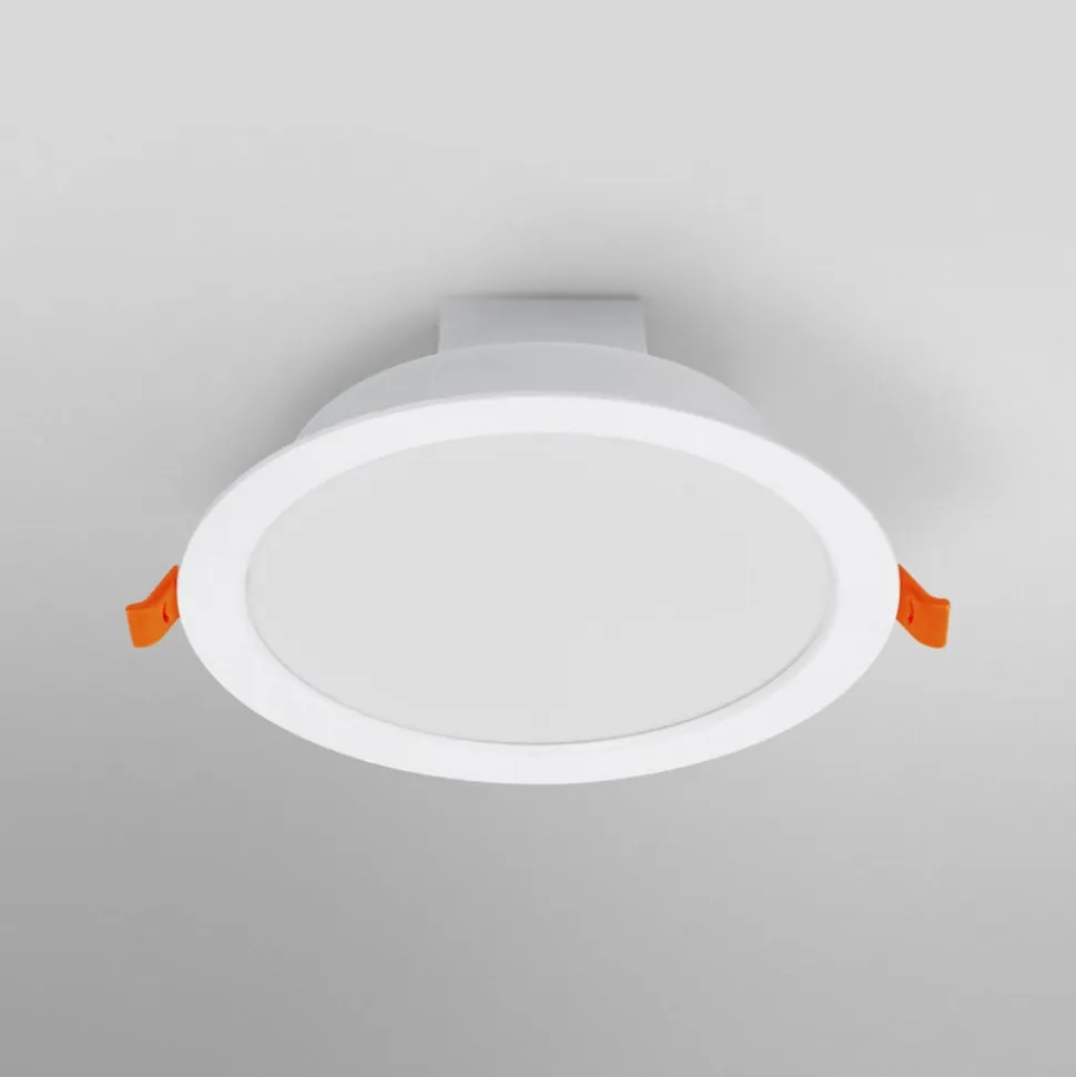 LED-indbygningslampe Spot med LEDVANCE SMART+ WiFi-teknologi og farveskift LED-spot er lavet af plast og fås i hvid, så den passer perfekt ind i en række forskellige indretningsstile og boligmiljøer. Lampen er velegnet til belysning af f.eks. gangarealer, korridorer eller køkkener. Lysstyrken kan justeres via app eller stemmestyring, farvetemperaturen kan varieres fra varm til dagslys hvid, og farveskiftet i RGB kan styres. På den måde kan lysforholdene til enhver tid tilpasses individuelle behov. Integration sker med LEDVANCE SMART+ WiFi-teknologi via WLAN – Kan styres gratis via LEDVANCE SMART+ WiFi-app (med mindst Android 4.4 eller iOS 9.0); muliggør forudindstillinger og automatisering – Stemmestyring via Google Assistant eller Amazon Alexa mulig (kræver kompatibelt smart home-system) – Farvetemperatur justerbar: 3.000 K – 6.500 K – RGB farveskift – Dæmpbar – Netværksprotokol: WiFi