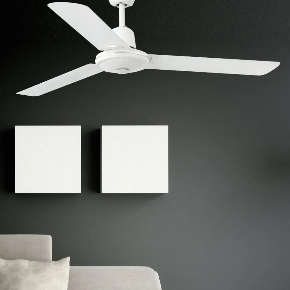 Lige og enkel loftventilator Eco Indus i hvid med hastighedsregulator