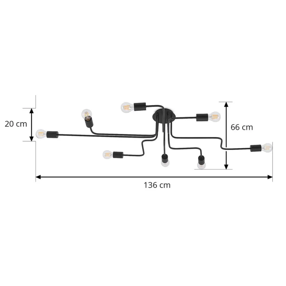 Elimar loftlampe i jernstål med otte lyskilder