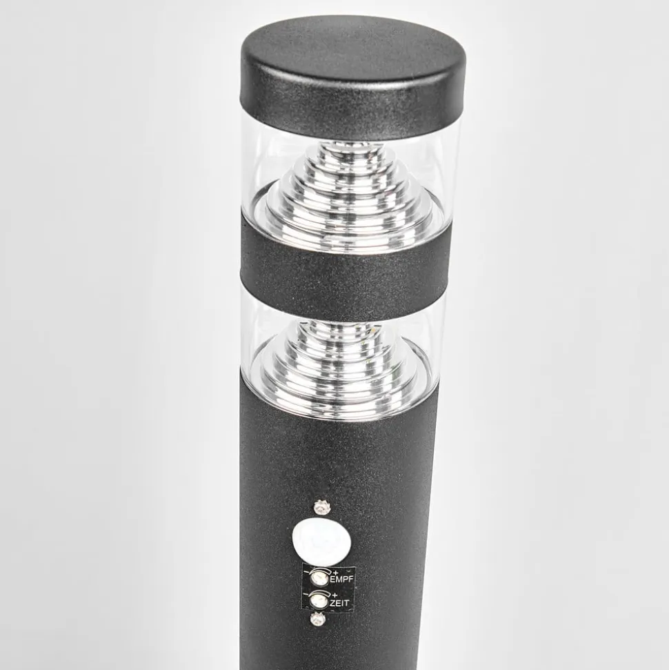Sort cylindrisk Lanea LED-vejlampe med bevægelsessensor Lanea er lavet af rustfrit stål med en sortmalet overflade. Med denne farve kan vejlampen helt sikkert skille sig ud fra konventionel udendørsbelysning og passer selvfølgelig perfekt til et moderne miljø. Det er her, LED-vejlampen med bevægelsesmelder gør et førsteklasses indtryk og bidrager til en stilfuld atmosfære. Ikke kun det visuelle udseende skal nævnes, lyseffekten er også værd at fremhæve, da LED’erne spotlighter fra top til bund og møder trappelignende reflektorpærer med en skinnende overflade. Når den er tændt, får man næsten indtryk af, at der er ringe af lys bag de klare plastikdæksler. Men det er ikke alt: Lanea LED-vejlampen er også udstyret med en bevægelsessensor, der reagerer på bevægelse inden for en rækkevidde på 2 til 8 meter, hvor værdien kan indstilles individuelt. Lysets varighed kan også indstilles inden for en tidsramme på 5 sekunder til 6 minutter. Alle bevægelser registreres i en vinkel på op til 90 grader.