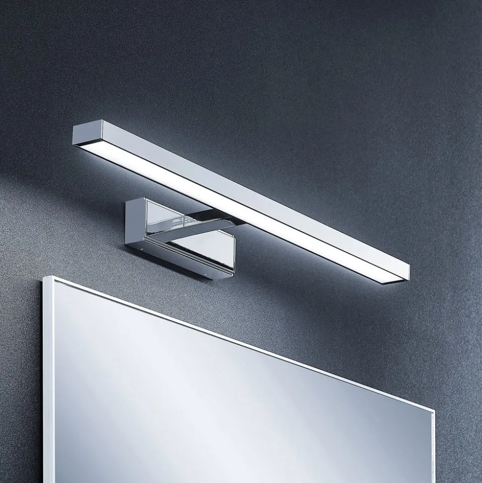 Praktisk LED-spejllampe Jukka, ideel til badeværelset Jukka LED-spejllampen har et moderne design og er ideel til belysning over spejle, f.eks. på badeværelset eller gæstetoilettet. Spejllampens nedadrettede lys giver tilstrækkelig lysstyrke til den daglige frisør eller barbering uden at blænde. De indbyggede LED’er udsender et blødt, varmhvidt lys, som også skaber en behagelig atmosfære i rummet.