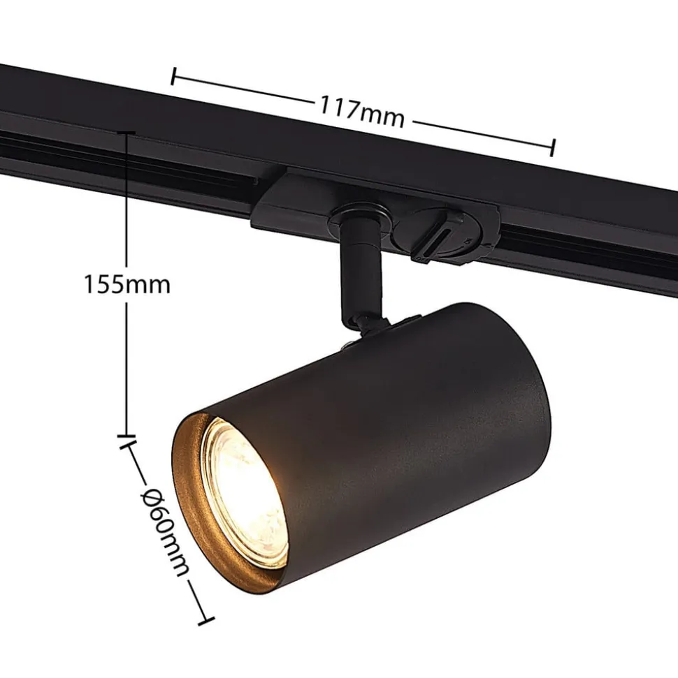 Lindby skinnespot Linaro, GU10, Ø 6 cm, sort, 1-faset