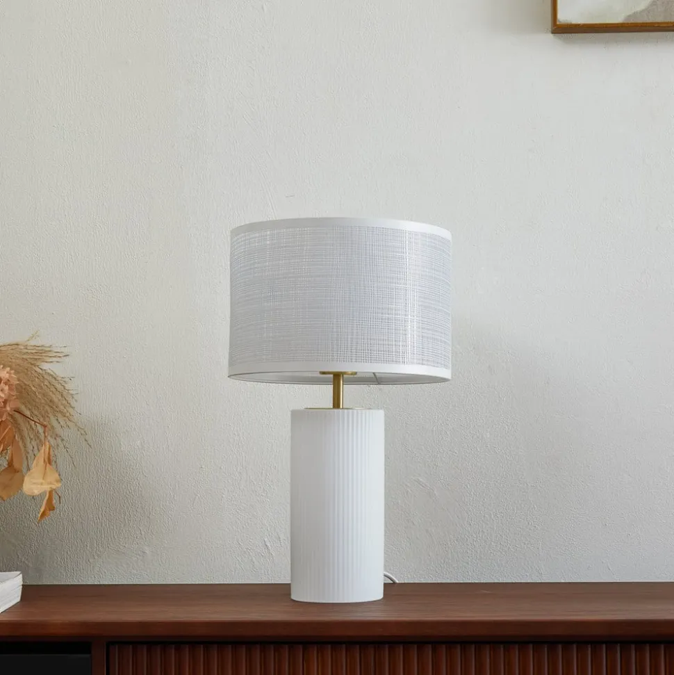 Lindby Sorscha bordlampe, hvid, jern, Ø 26 cm