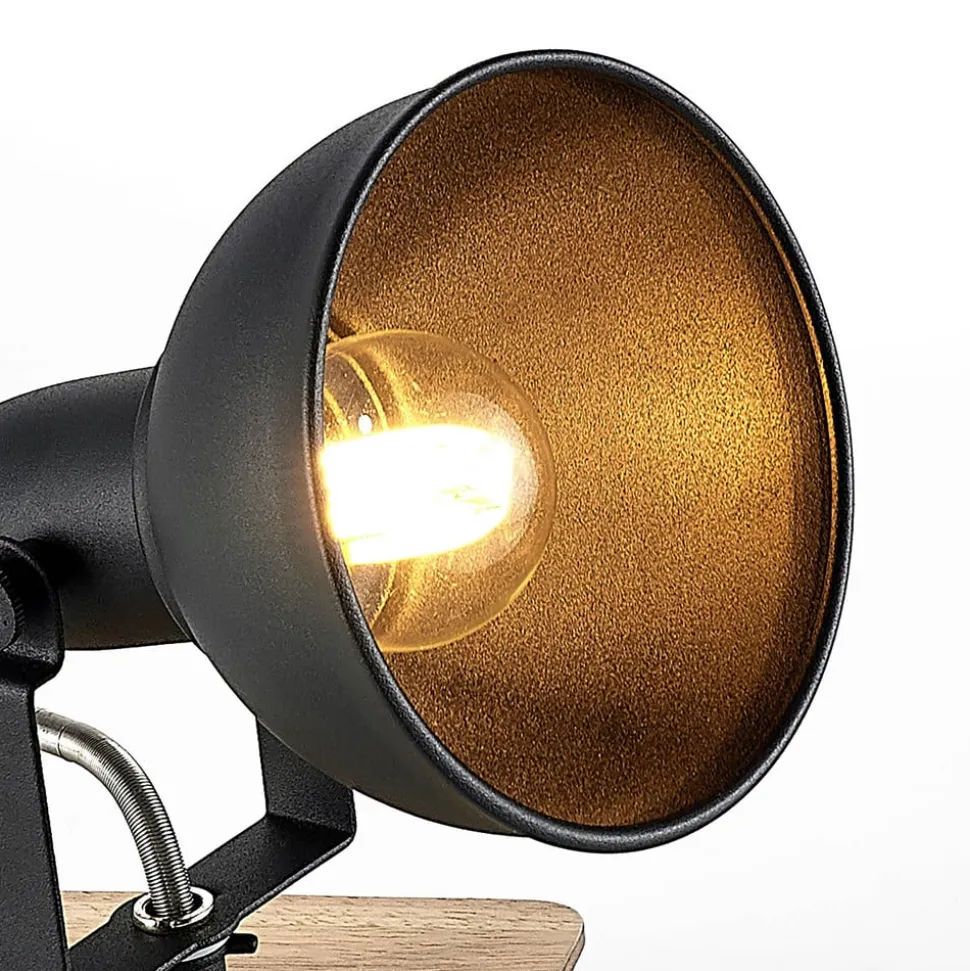 Lindby spotlight Aylis, højde 14 cm, sort, træ, E14