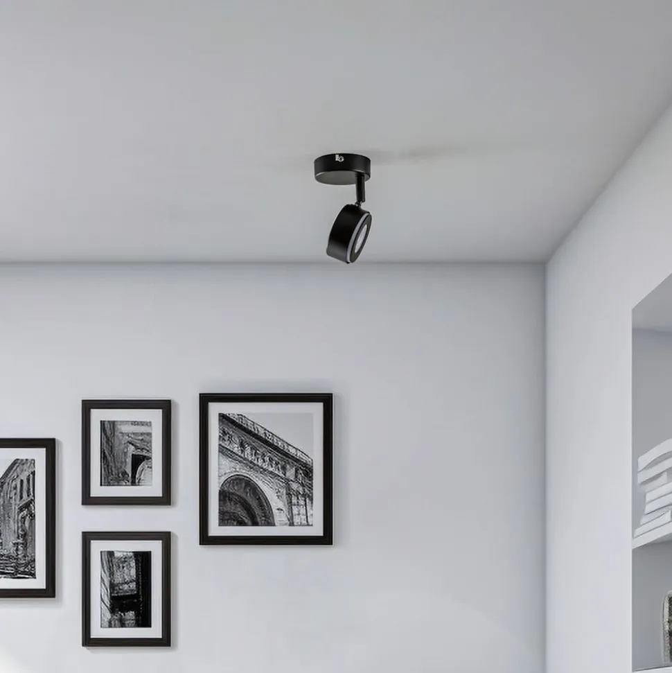 Sort Jyla-spotlight med justerbar skærm, dæmpbar Den enkeltflammede Jyla-loftspotlight er lavet af jern og giver omgivelserne et sofistikeret præg med sit sorte ydre. Samtidig passer den ubesværet ind i forskellige boligområder takket være sit diskrete design. Den er f.eks. ideel som lyskilde i entreen, køkkenet, stuen eller spisestuen. Den runde skærm kan justeres, så lyset kan rettes individuelt og give en optimal belysning af rummet. Lyskilden GX53 er inkluderet i leveringsomfanget, og lyset kan tændes og slukkes som normalt ved hjælp af en vægkontakt. Takket være 3-trins dæmpningsteknologien med integreret slukkefunktion kan den også dæmpes til tre forskellige lysstyrkeniveauer ved at trykke på kontakten flere gange: 100 %, 50 % og 12 %.