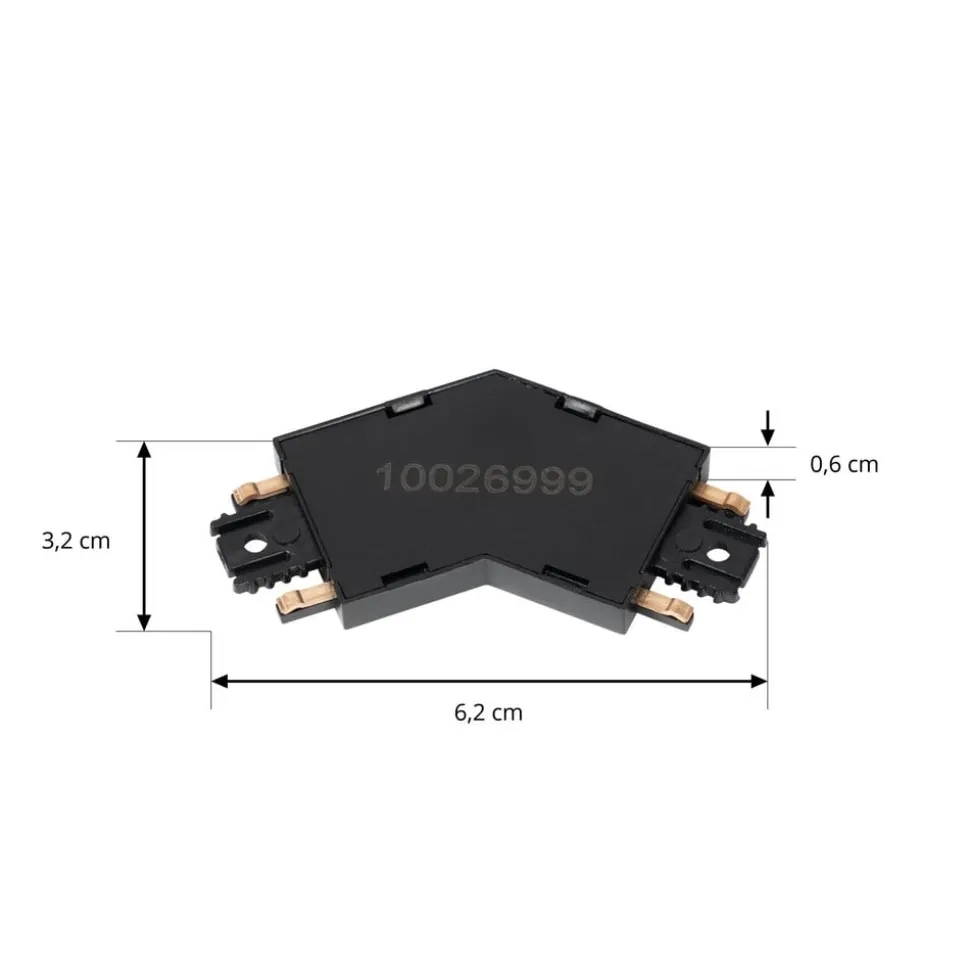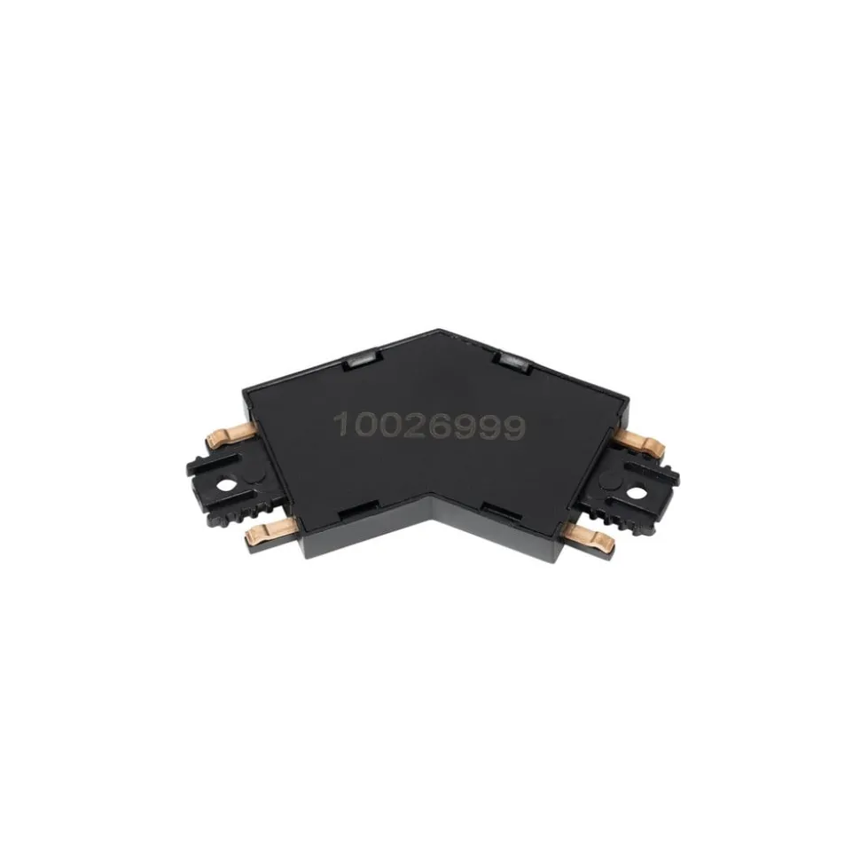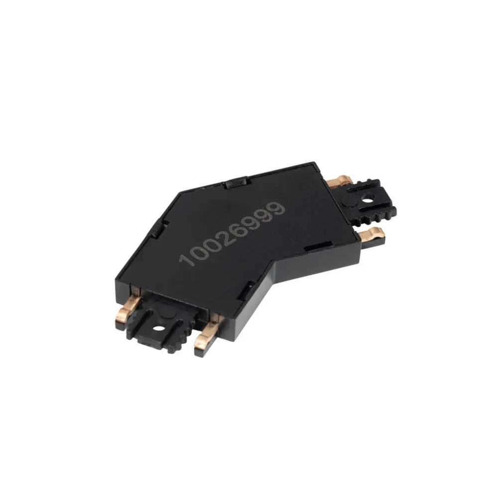 Lumaro-stik i sort plast med 135° vinkel Dette stik kan forbinde de enkelte komponenter i Lumaro skinnesystemet.