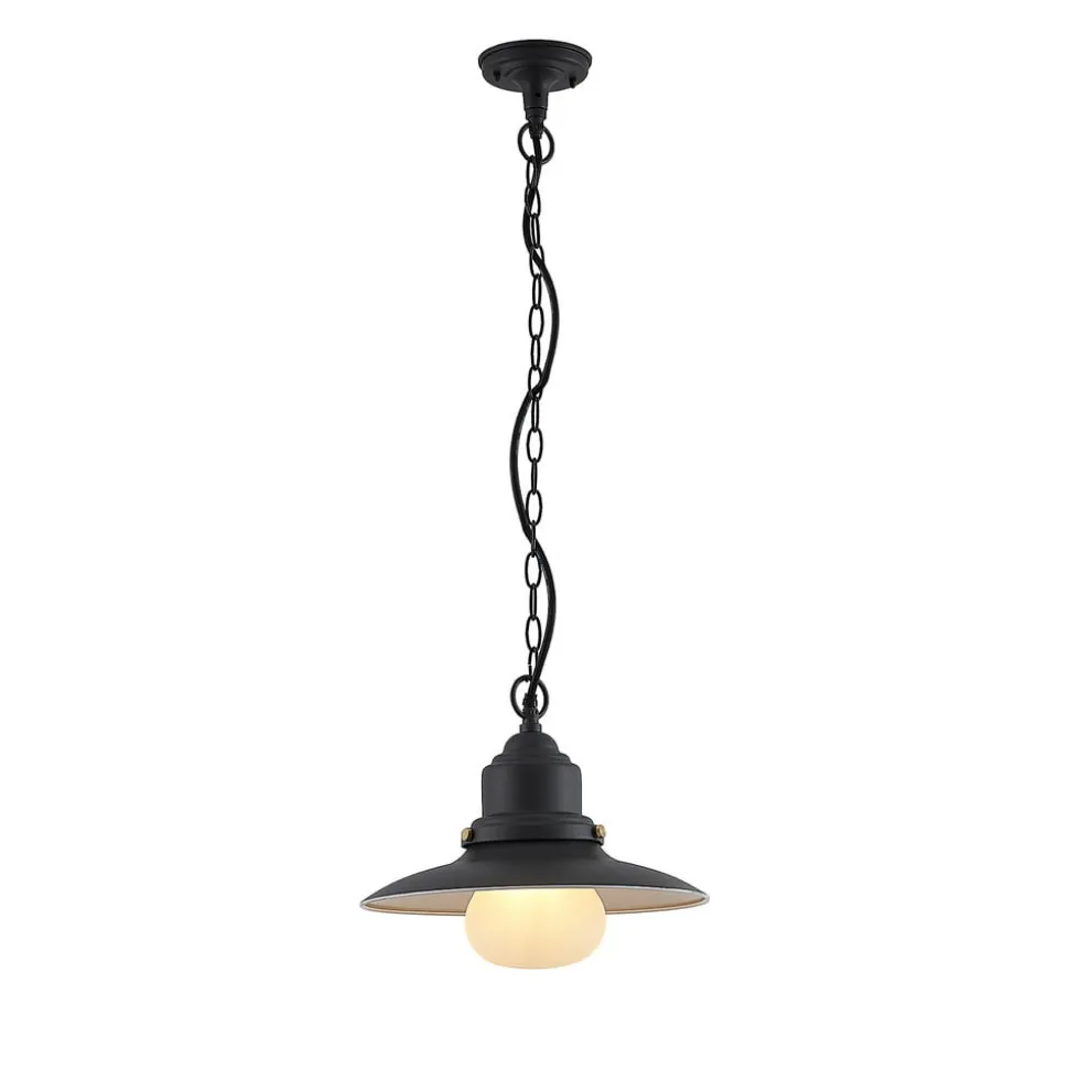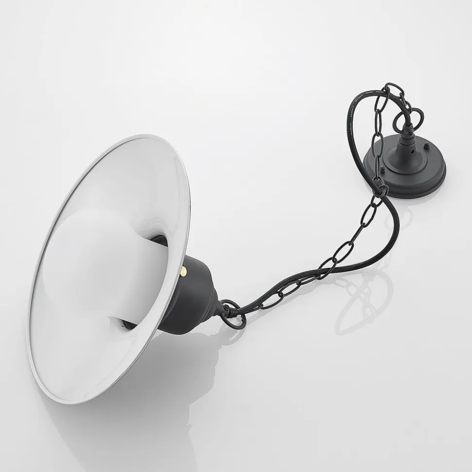 Roisin udendørs hængelampe i mørkegråt stål Roisin udendørs hængelampe har et slående design i mørkegråt stål. En hvid glasskærm hænger fra den rustikke lampeskærm i stil med en fiskerlampe og omgiver den pære, der skal bruges. Her kan vælges en E27-pære, som genererer blændfri belysning gennem lampeskærmen. Takket være kapslingsgraden IP44 er lampen beskyttet mod vandsprøjt og er derfor perfekt til installation på en overdækket terrasse. Den udendørs hængelampe Roisin hænger i et slankt ophæng, så den også kan installeres på mindre terrasser uden at optage for meget plads. Det industrielle look sætter markante accenter i husets arkitektoniske stil. Den tiltrækker nysgerrige blikke og gør ethvert udendørs område til noget helt særligt.