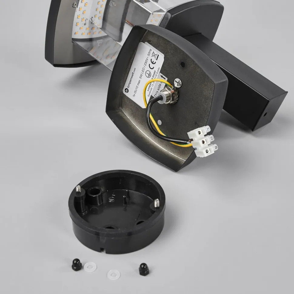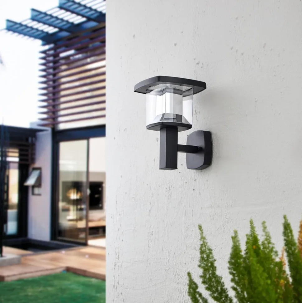 Denne udendørs LED-væglampe har et moderne design og er fremstillet af sort stål og polycarbonat, så du kan have glæde af lampen i lang tid i udendørs omgivelser.