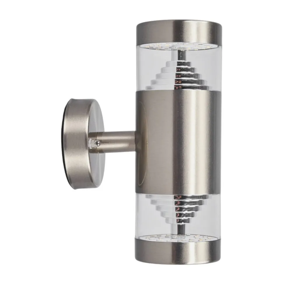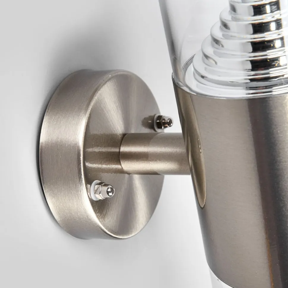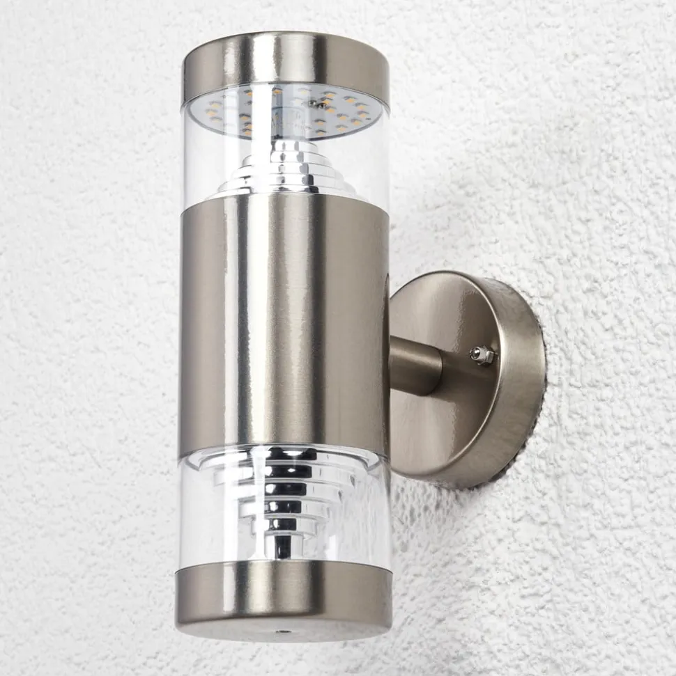 Udendørs LED-væglampe Lanea med smuk rustfri ståloverflade og effektfulde reflekterende indsatser
