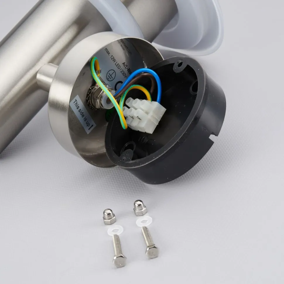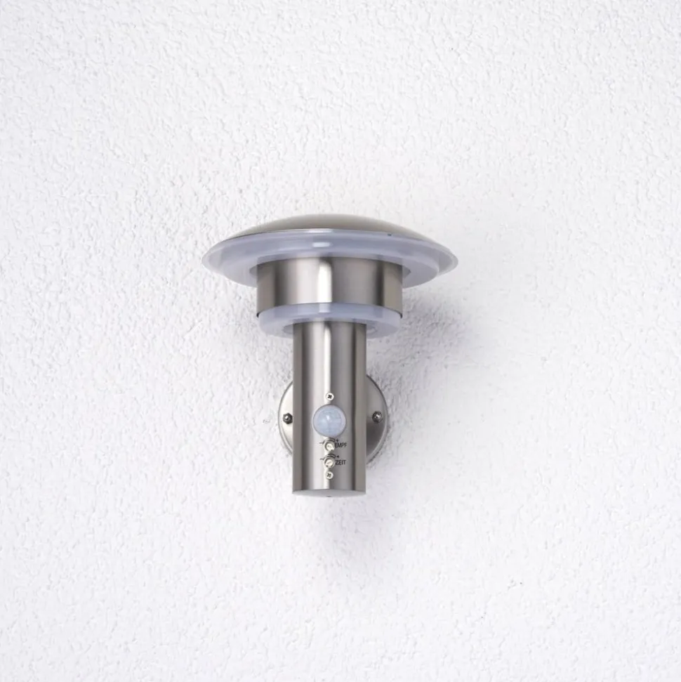Udendørs LED-væglampe Lillie i smukt rustfrit stål-look Så behøver man ikke længere lede længe efter en afbryder, der muligvis befinder sig inde i huset, men kan stole på, at tilstedeværelsessensoren reagerer pålideligt på, når der kommer personer, ved at tænde udendørs væglampe. Følgende ændringer kan foretages på tilstedeværelsessensoren: Lysvarigheden kan indstilles (5 sekunder-4 minutter), og rækkevidden kan også varieres (2-8 meter)registreringsvinklen er 90 grader.