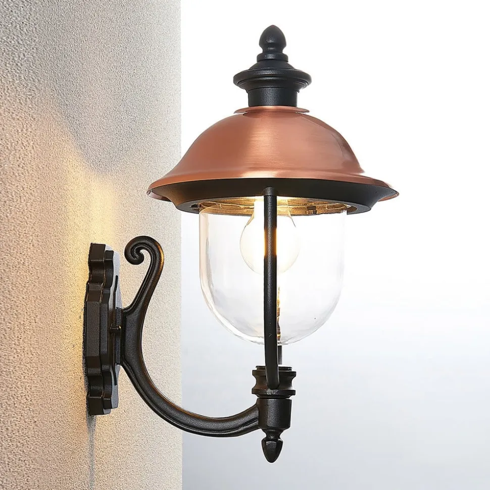 Udendørs væglampe Clint med kobbertag, saltvandsresistent