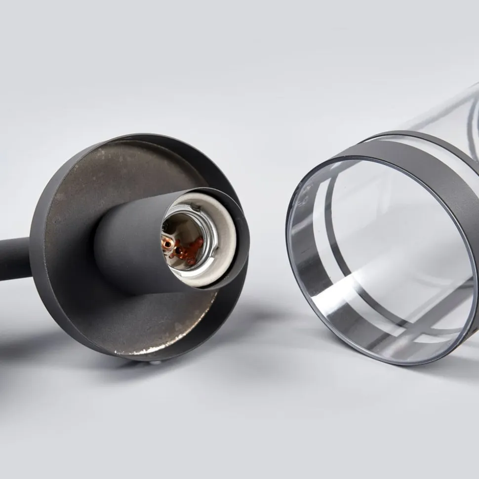 Mørkegrå udendørs væglampe Djori med klar diffusor