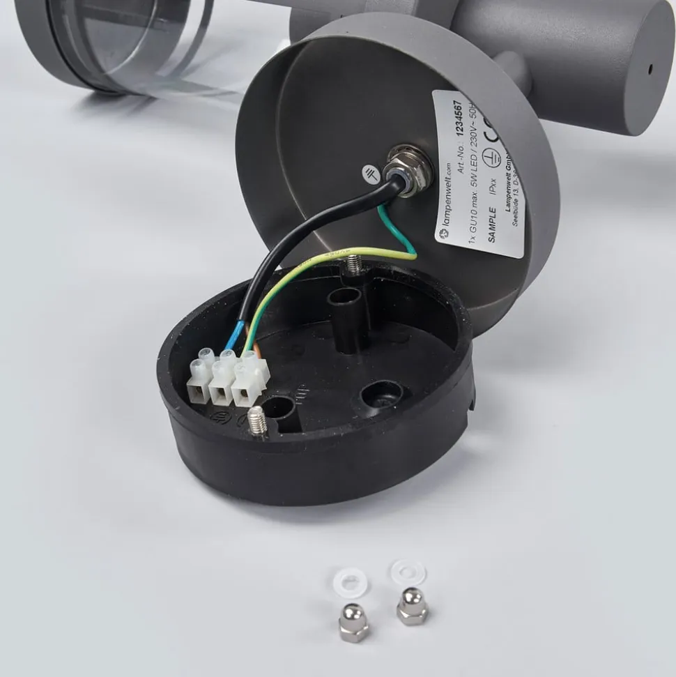 Lampekroppen på Djori er fremstillet af stål og derefter lakeret i mørkegrå. Lampeskærmens grundform er cylindrisk, og indsatsen består af klart polycarbonat, så der er fuldstændig fri udsigt til lyset og pæren. Udendørs væglampe kan med fordel bruges som supplement til moderne omgivelser, hvor den giver en stilfuld belysning.