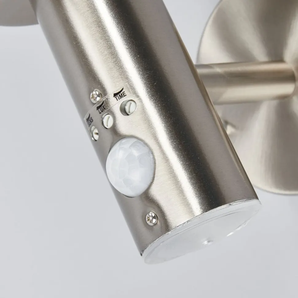 Praktisk Djori væglampe med sensor til udendørs brug Djori er designet til udendørs brug og er udstyret med en sensor. Det gør, at væglampen kun tænder, når den registrerer bevægelse i umiddelbar nærhed. Rækkevidden er variabel og kan indstilles til maksimalt 8 meter, mens registreringsvinklen er 90°. Lysets varighed er også justerbar og kan indstilles mellem 10 s og 4 min. Rammen på væglampen med sensor er lavet helt i rustfrit stål og har et moderne udseende. Indsatsen omkring pæren er lavet af klar plast og garanterer derfor fuld lysstyrke.