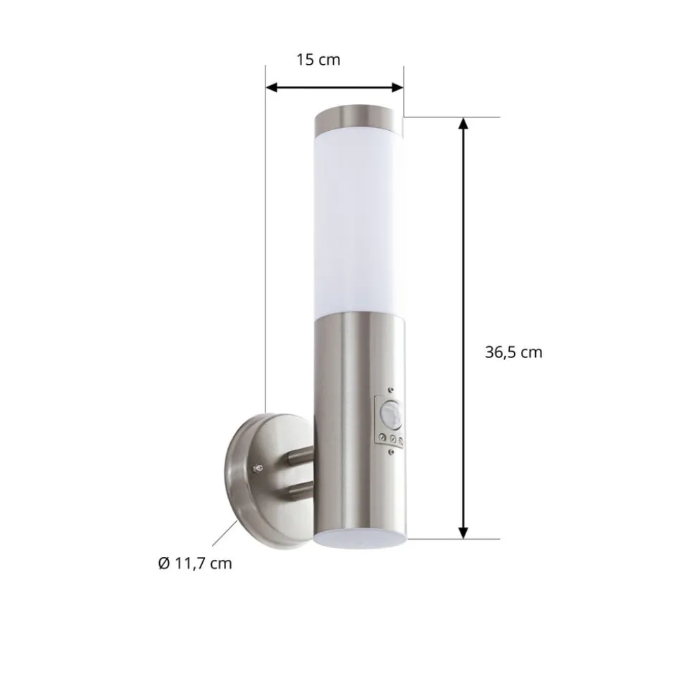 Attraktiv Kristof sensor udendørs væglampe i en rund cylindrisk form ALS bruger vil du primært række ud efter sensor udendørs væglamper, hvis du vil have lyset til at tænde hurtigt, når der er brug for det, uden at det er tændt hele natten. Den integrerede sensor, som reagerer på bevægelser i omgivelserne, sørger for, at det er præcis det, der sker. I tilfældet med Kristof udendørs væglampe har sensoren en rækkevidde på 1 til 8 meter, mens registreringsvinklen er 120 grader. Lysets varighed kan justeres fra 10 sekunder til 8 minutter.