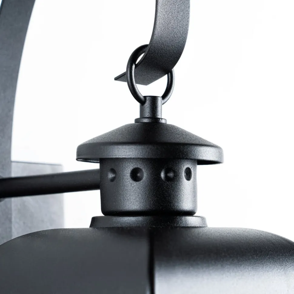 Nostalgisk udseende Mertollio udendørs væglampe med sort finish og glasindsats Mertollio passer godt til antikt udseende huse fra andre århundreder og udstråler en klassisk lygte med et nostalgisk præg. Rammen på den udendørs væglampe er legende buet, og burlignende indsatser holder det klare glas, som beskytter lyset mod snavs og fugt. En smuk lyskilde til hele udendørsområdet! Passer til pærer med en maksimal længde på 10 cm og en maksimal diameter på 6 cm.