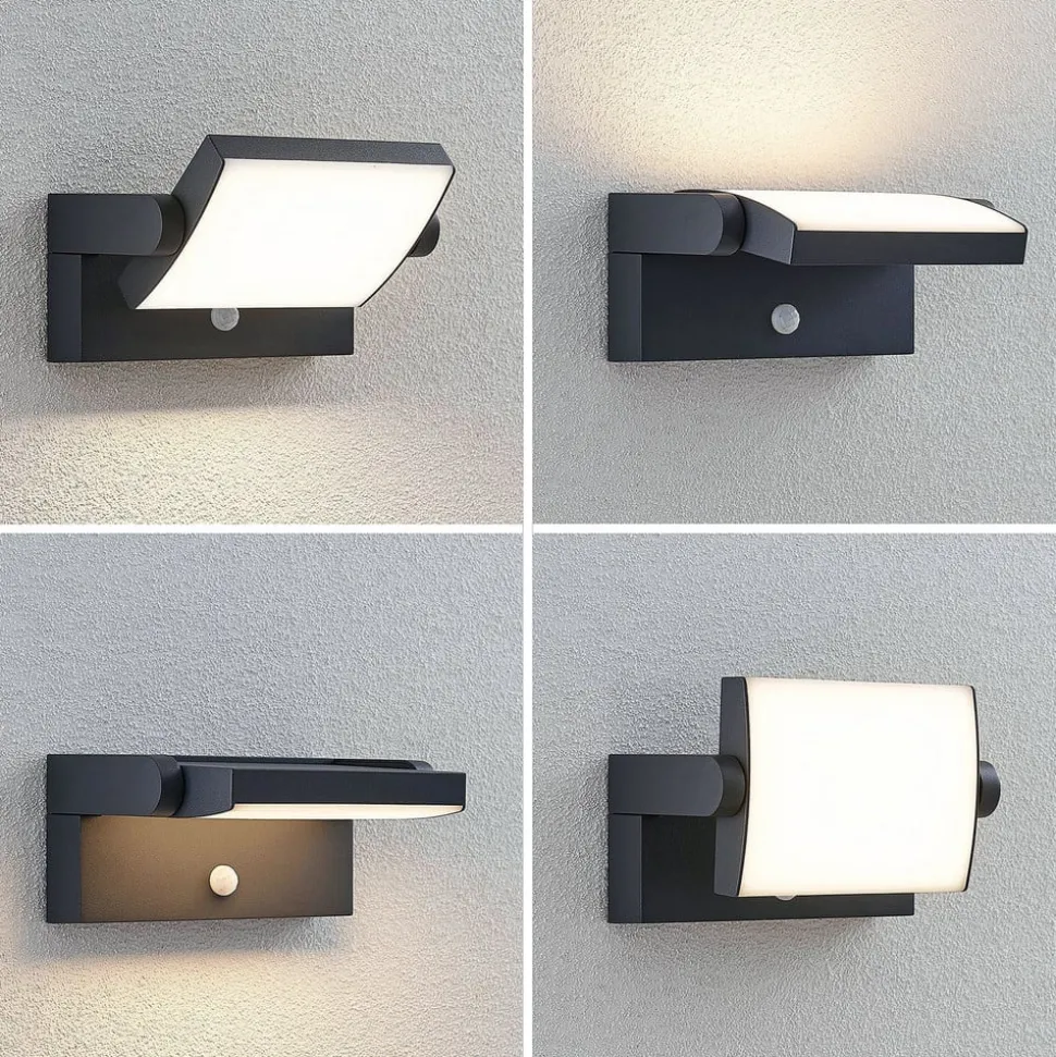 Lindby udendørs væglampe Sherin, sæt med 2, drejelig, sensor