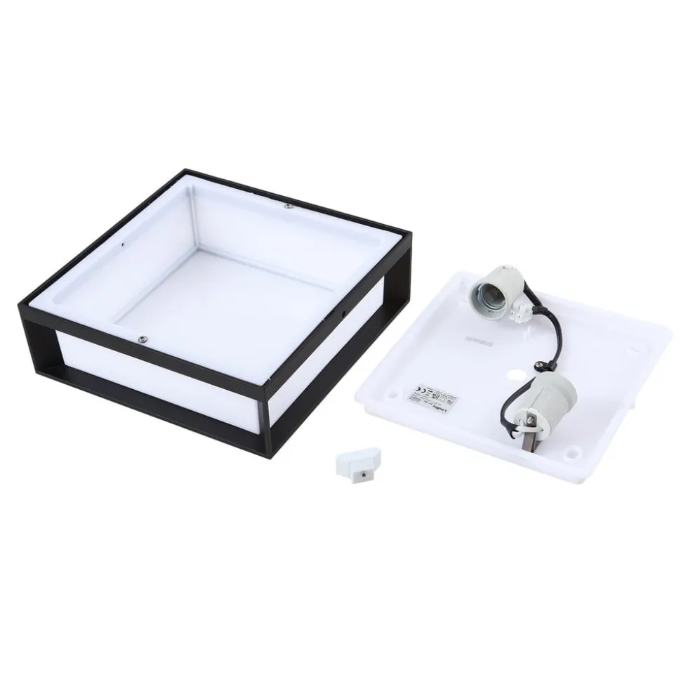 Lindby udendørs væglampe Sivana, sort, aluminium, 26 cm x 26 cm