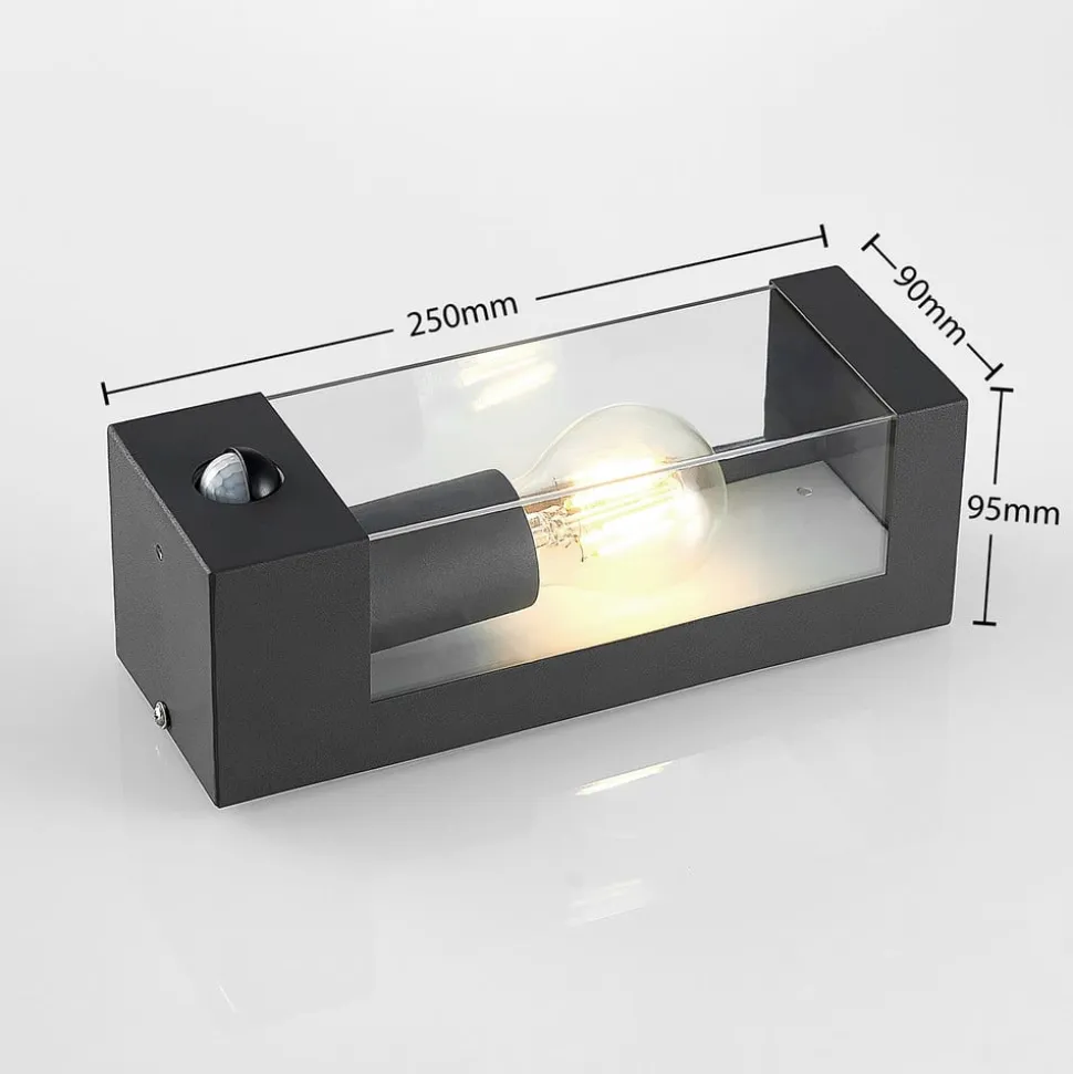 Lindby udendørs væglampe Tilian, sensor, højde 25 cm, antracit