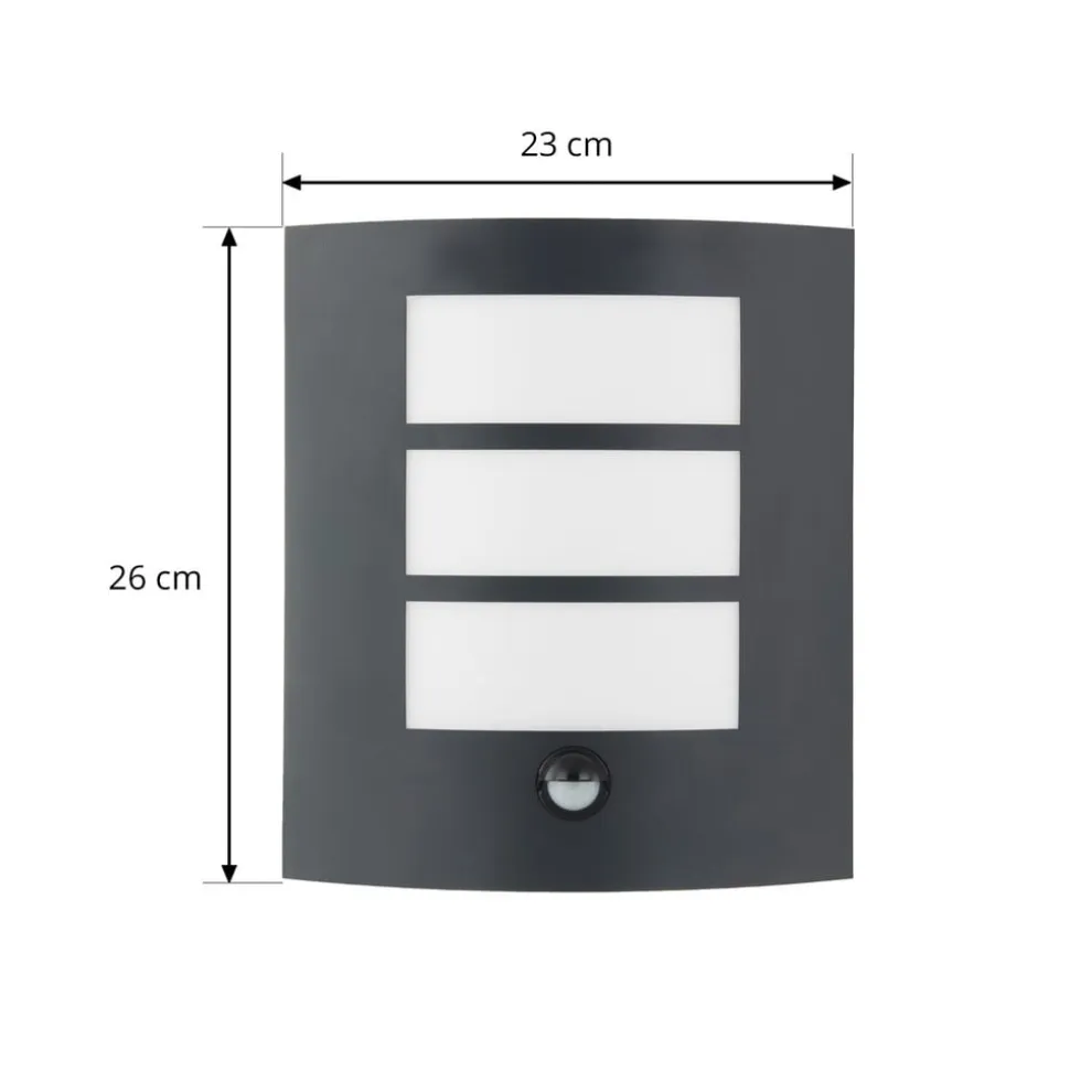 Lindby udendørs væglampe Vimal, sensor, E27, 26 cm, aluminium