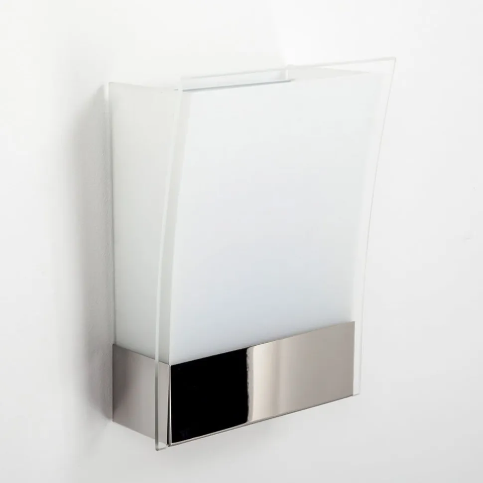 Væglampe Malthe overbeviser med stil og elegance. Den forreste glasblænde hælder let fremad, hvor glaspladen for det meste er satineret, men har en klar kant. Denne kombination virker særdeles elegant og passer til et moderne miljø. Den hvid satinerede glasoverflade giver desuden en meget jævn lysfordeling, som normalt opleves som hyggelig. I bunden suppleres væglampe med et kromelement, hvilket skaber en harmonisk kontrast.