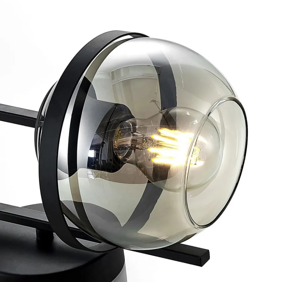 Lindby væglampe Marinka, højde 20 cm, sort, røgfarvet glas