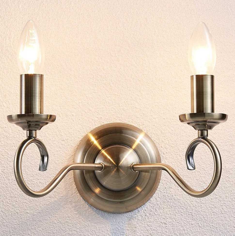 Lindby væglampe Marnia, antik messing, 2 lyskilder, 27 cm, E14