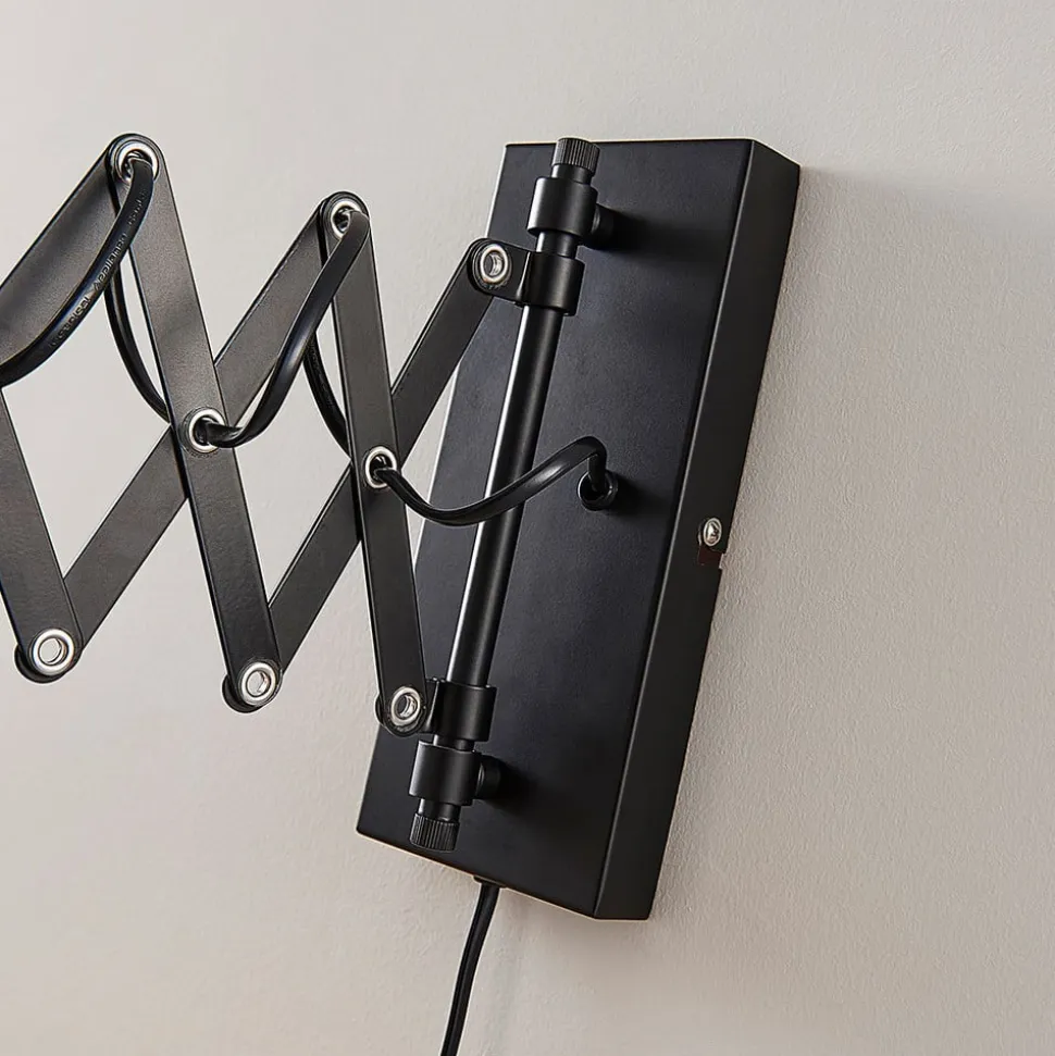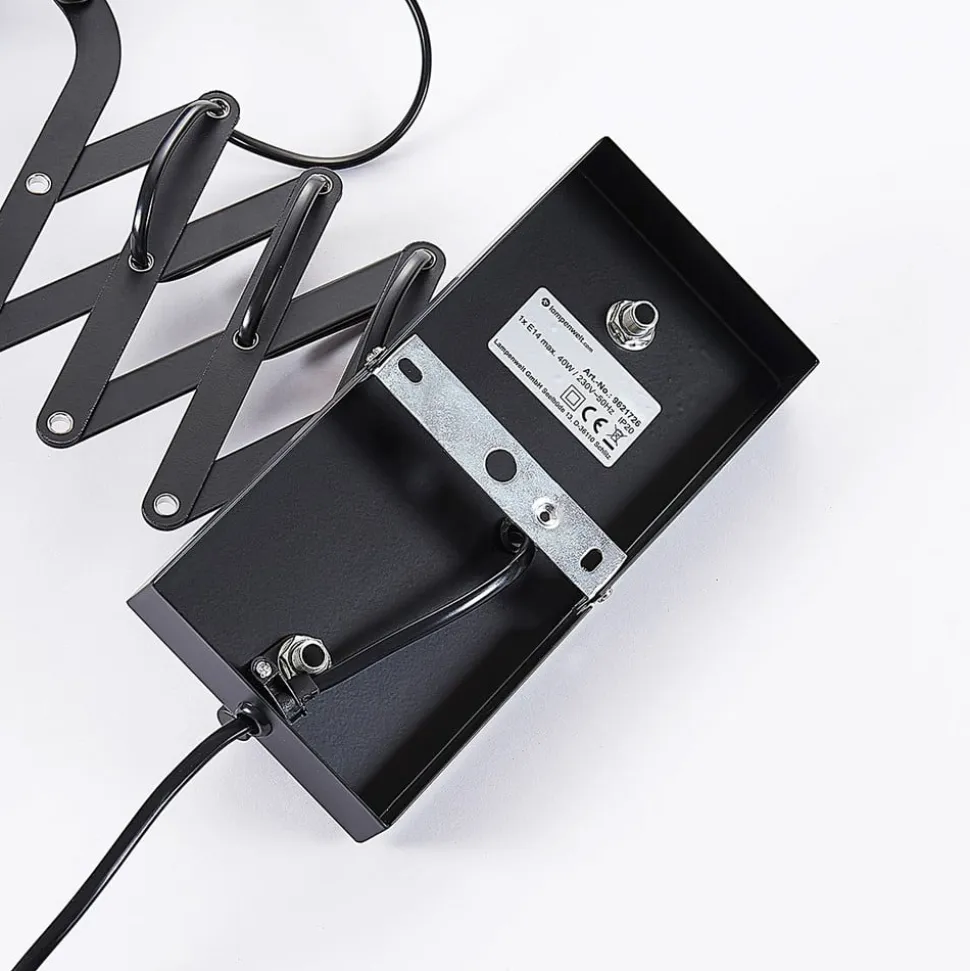 Funktionelt belysningselement med stilfuldt udtryk: den udtrækkelige væglampe Merle Merle er udstyret med en saksearm, som gør det muligt at trække lampen langt ud i rummet. Desuden kan væglampe drejes til venstre og højre, og lampehovedet kan vippes, så man kan finde den optimale position for lysudbredelsen og dermed opnå et ideelt belysningsresultat. Den høje funktionalitet af en harmonika sikrer, at væglampe Merle er meget velegnet til læsning. Den er derfor velegnet til montering inden for rækkevidde af en sofa eller en seng. Ledningen er 180 cm lang og afsluttes med en stikprop.
