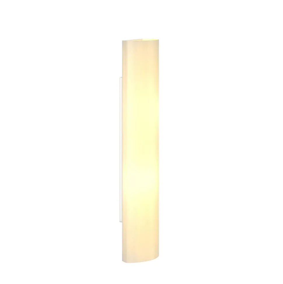 Diskret glasvægslampe Ophelia helt i hvidt Når man ser lampekroppen Ophelia forfra, ser man ikke andet end den hvide glasskærm. Det er netop derfor, Ophelias udseende er så enkelt og tidløst. Væglampen i glas skaber et hyggeligt lys, som er en behagelig tilføjelse til stuen. Der er to E14-stik bag glasskærmen, som kan udstyres med en pære efter eget valg, og der er ingen grund til at være særlig hensynsfuld i valget af rum, for Ophelia ser stilfuld og diskret ud overalt.