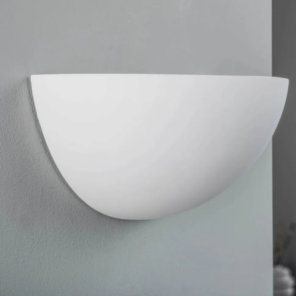Den halvcirkelformede Pascali-væglampe i malbar gips imponerer med sit indirekte lysudslip Pascali er en klassisk væglampe, hvad angår form – harmoniske konturer, alsidige anvendelsesmuligheder og et varmt, blødt lys, der smigrer ethvert rum og er yderst indbydende. En virkelig anbefalelsesværdig lyskilde til private rum af alle typer og stilarter, da både klassisk interiør og moderne lejligheder og huse kan suppleres perfekt med denne form for belysning. Hvid som farve er helt sikkert en klassiker med et tidløst touch, som vil fortsætte med at give glæde i mange år fremover. Men for dem, der er på udkig efter individuelle designmuligheder, er Pascali-væglampen også et smukt belysningsinstrument, da gipsoverfladen giver mulighed for personligt design. Der følger handsker og sandpapir med væglampen til dette formål, og efter passende overfladebehandling og grunding kan Pascali males eller overmales efter ønske. Tone-i-tone med vægfarven, opnåelse af en særlig kontrast eller et individuelt motiv – alt dette er muligt uden problemer!